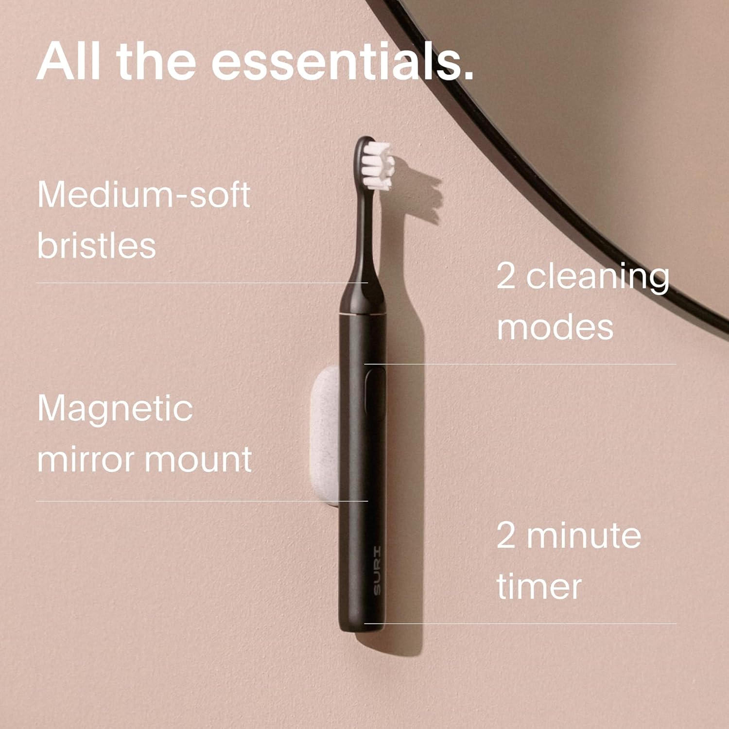 SURI 1.0 Sonic Electric Toothbrush with UV Cleaning Travel Case | 40+Day Battery | Designed in California | Electric Toothbrush for Adults | Travel Toothbrushes | Tooth Brush | Black