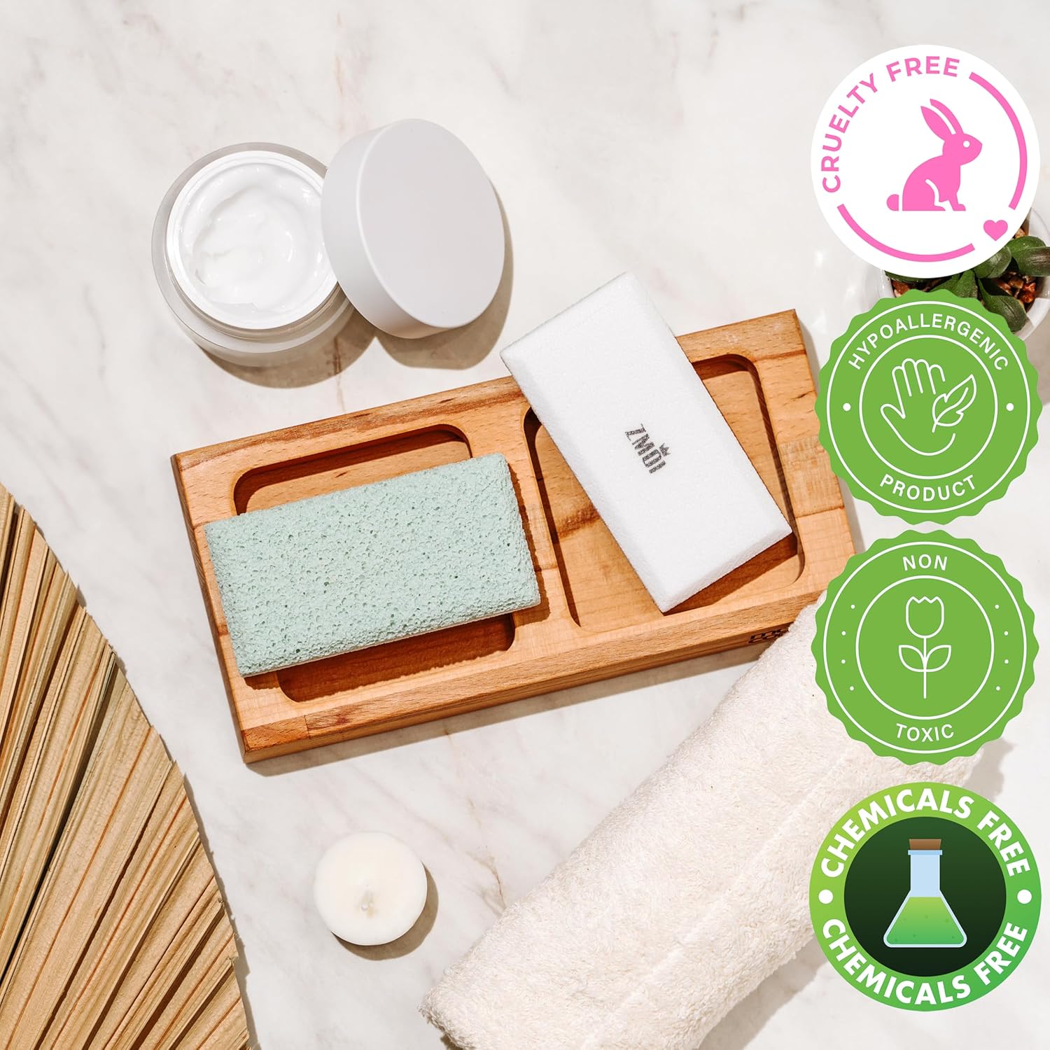 • Dual-Sided Skin Exfoliator – This is a unique pumice stone for women and men in that it features a rough exfoliation side to remove hard, dry, or thick skin patches and a soft fine pumice stone side that lets you buff and polish it to a natural vibrance.