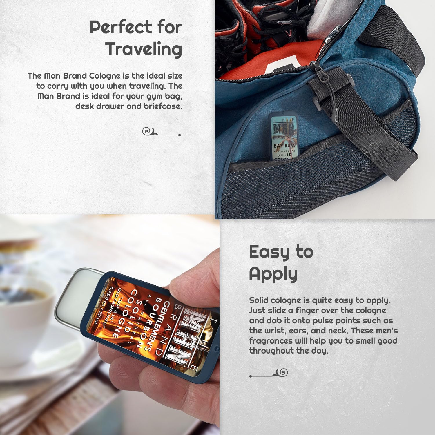 • Unique Scents: Discover a world of distinctive mens fragrances that set you apart from the crowd. With solid mens cologne, you can choose from an array of scents that match your personality.