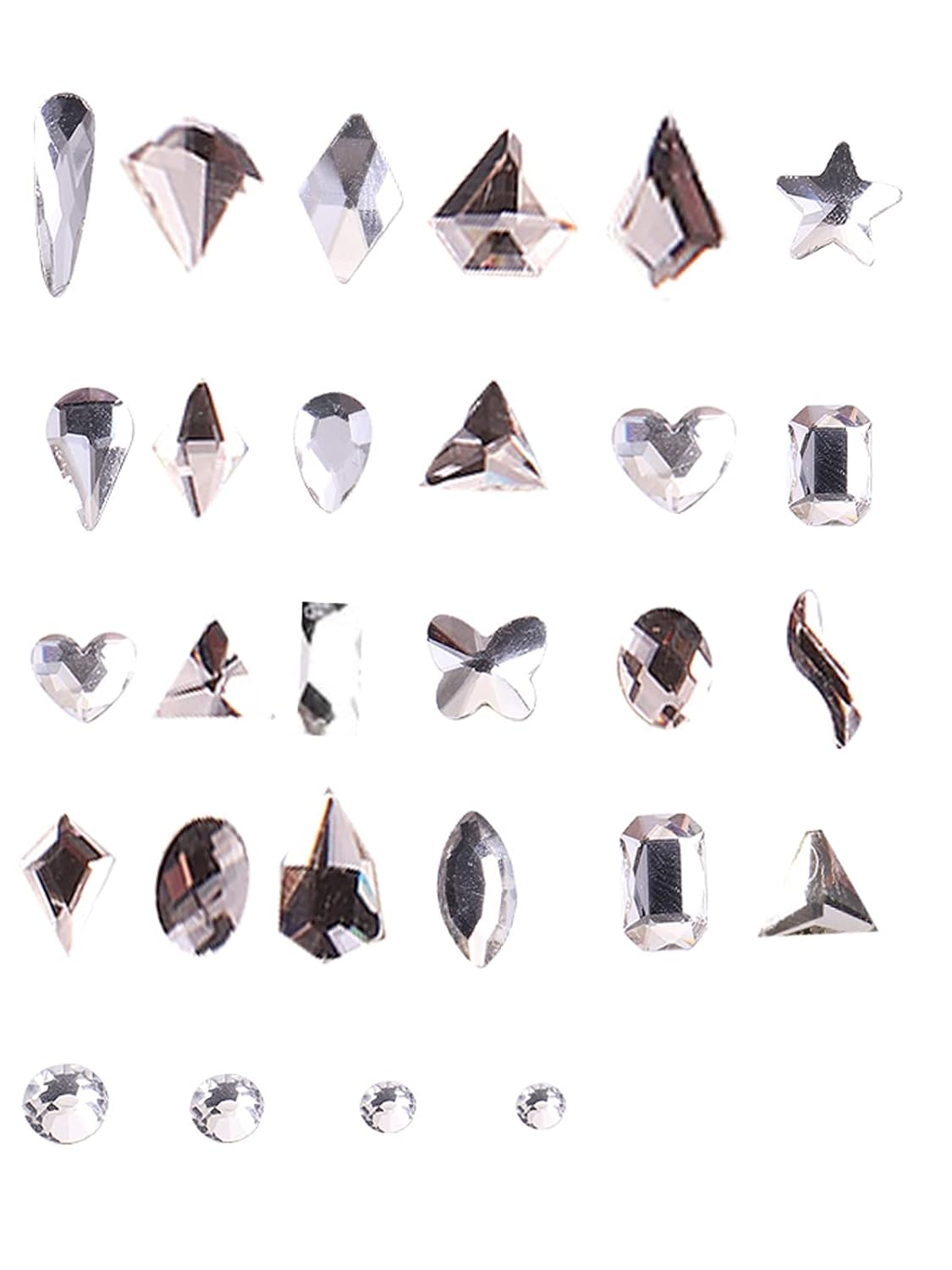 • 【SHINY CRYSTAL KIT】The professional luxury 3D rhinestones mixed 28 types,including 24 kinds of different shapes and 4 sized round rhinestones.Besides,the set is also equipped with a pretty wax pen and tweezers which can make nail decoration designs and add brilliance and charm to your nails.
