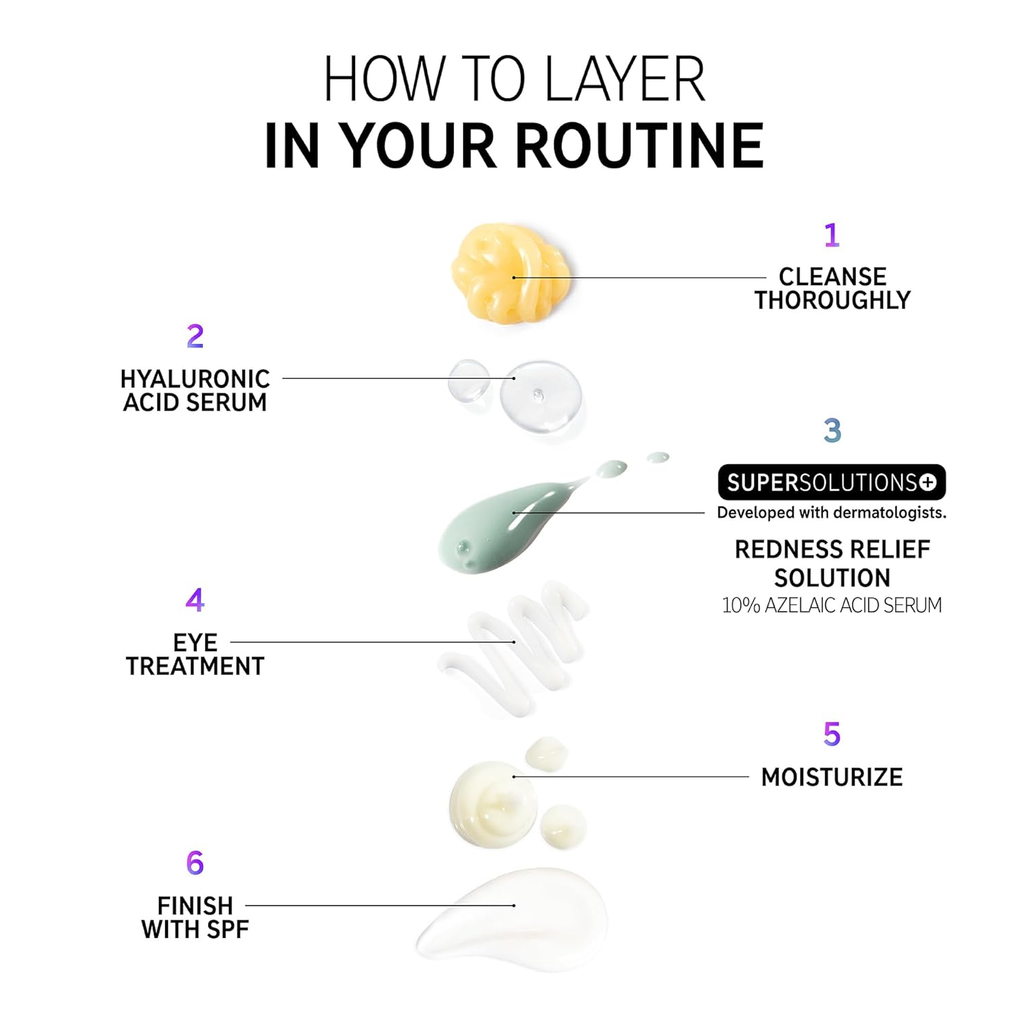 • Formulated with 10% Azelaic Acid to visibly reduce the appearance of redness and soothe skin that feels irritated.