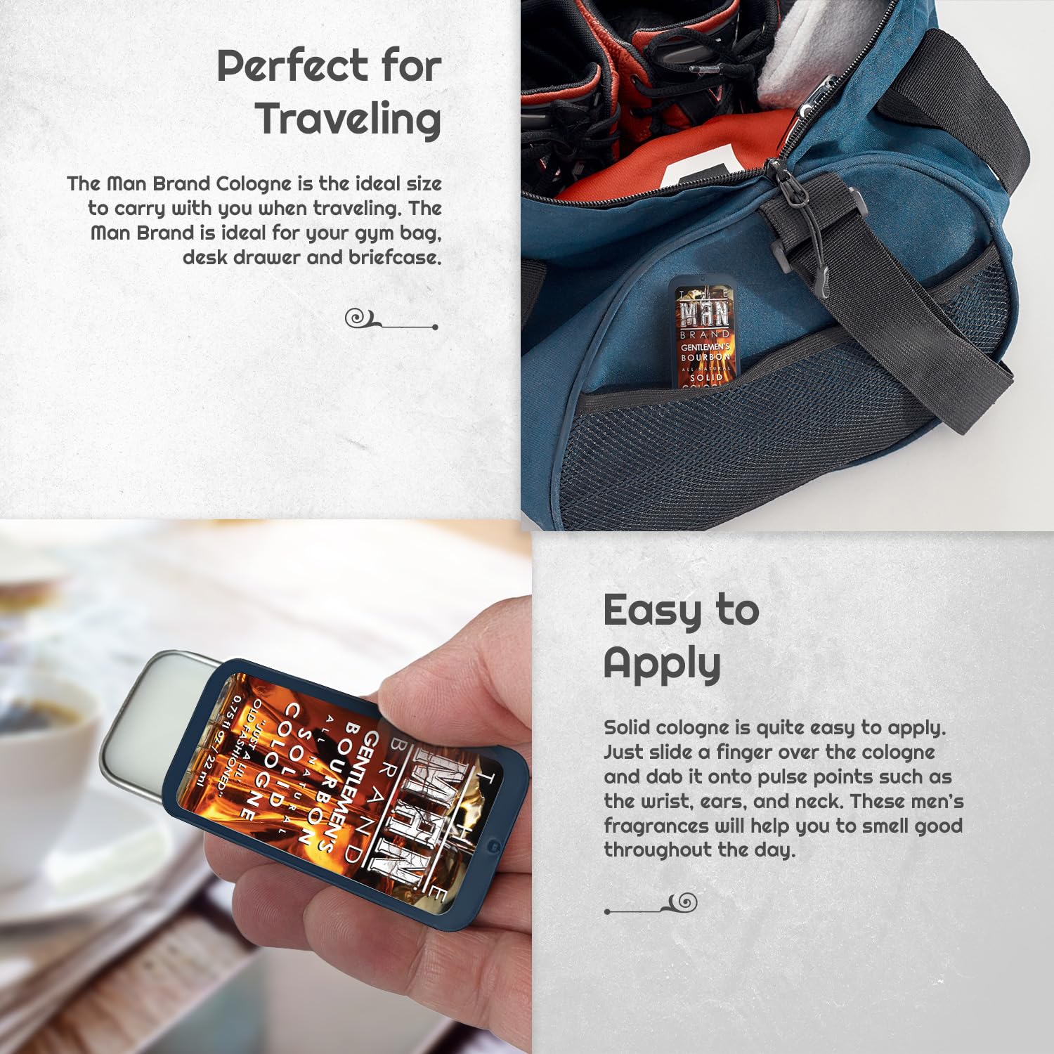 • Unique Scents: Discover a world of distinctive mens fragrances that set you apart from the crowd. With solid mens cologne, you can choose from an array of scents that match your personality.