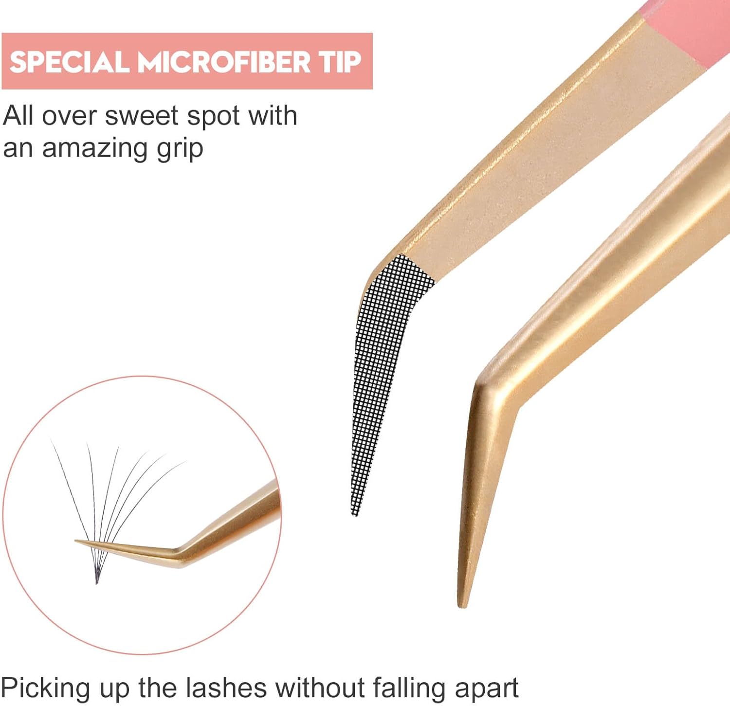• Fiber Tip Lash Tweezers:Specifically designed with a microfiber tip Special microfiber tip—All over sweet spot with an amazing grip, picking up the lashes without falling apart