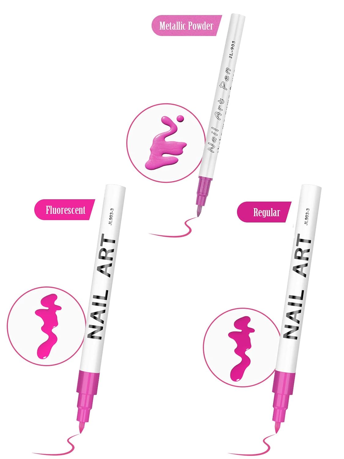 • 【NOTE】 - The nail art pens to be used with nail polish top coat, even if the drawing is wrong, just wipe it with alcohol. Until the drawing is completed, the nail polish top coat can be applied to the picture after air-drying. Need to cover the cap after use to prevent the pen from drying out.