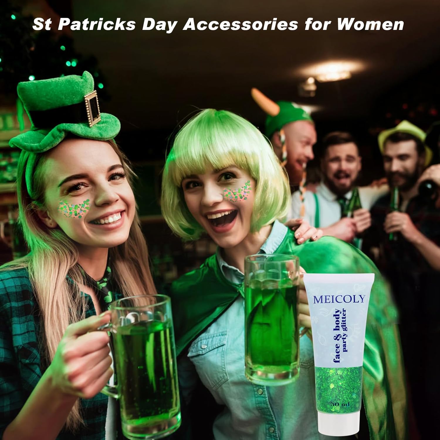 • St Patricks Day Face Glitter--- MEICOLY green face glitter is rich in green glitter sequins with different shape,the color and shine of the laser sequins vary with the perspective,great for st patricks day makeup,glitter makeup,Alien eye makeup and mardi gras carnival makeup,perfect st patricks day accessories for women.