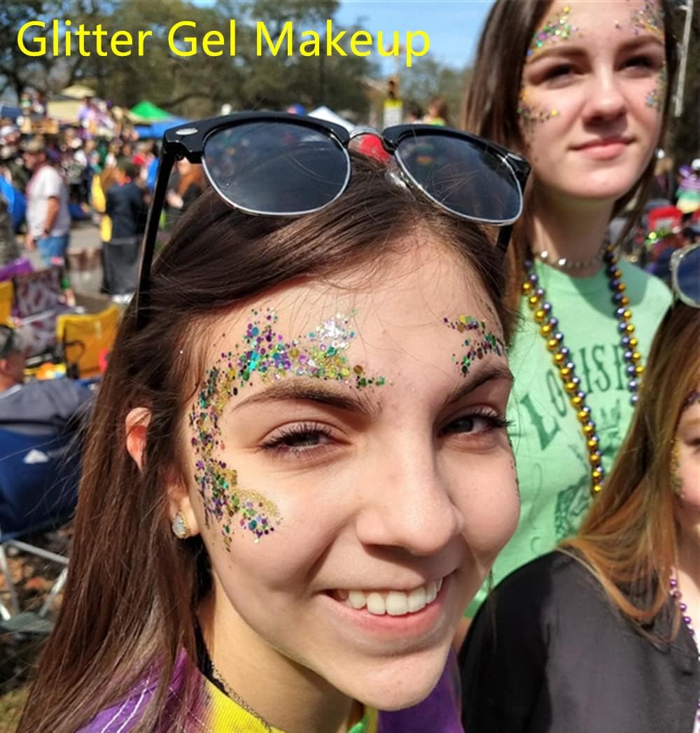 • Mardi Gras Glitter Wildly Use:This cosmetic chunky and fine glitters can be used to either complement your makeup look or just add some sparkle to other parts of your face and body.Great for face, body, eyeshadow, lips, cheeks, hair, nail art, and more.Great accessories for Singer Concerts,Music Festival,Rave,music festivals, weddings, parties, parades, football tailgates, and on stages around the world.