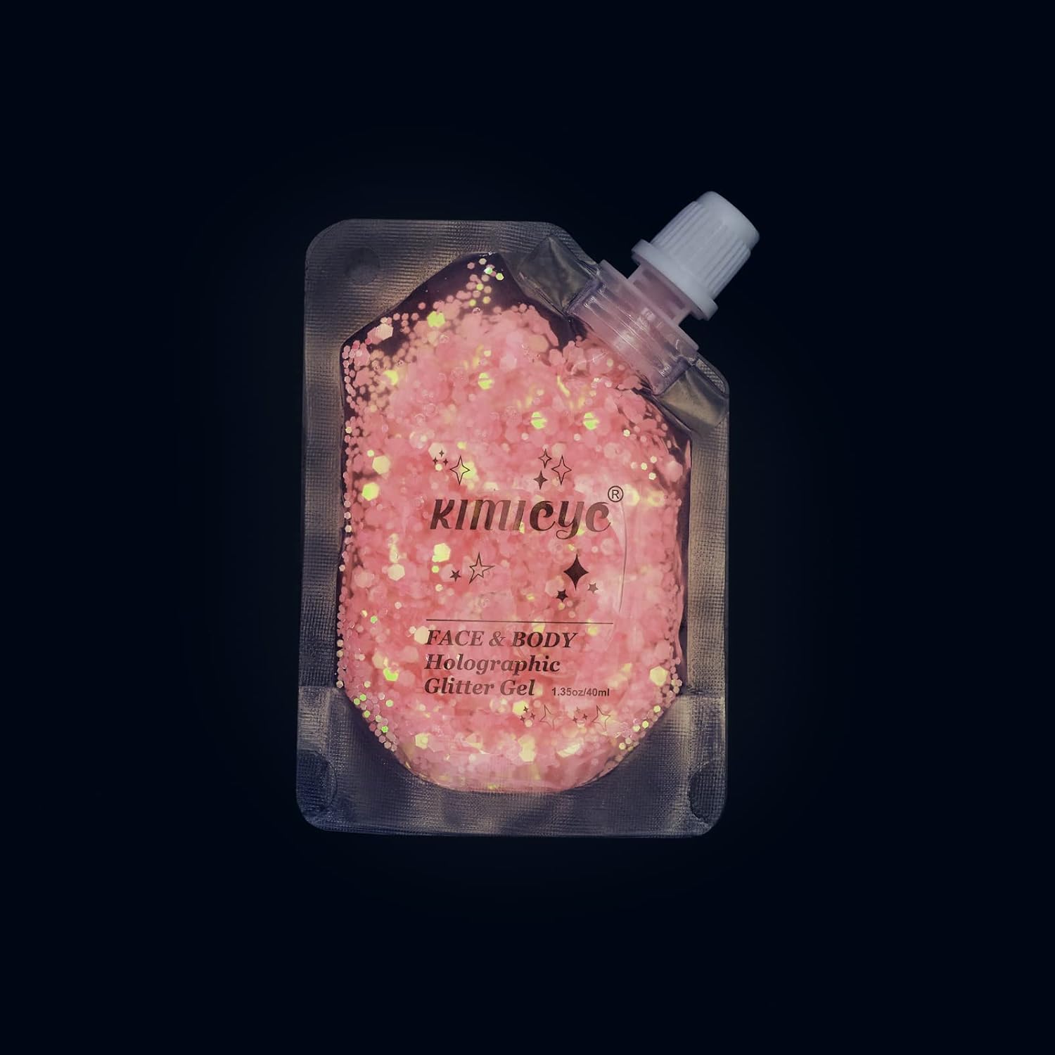 Holographic Face Glitter Gel Body Shimmer Makeup for for Hair, Face, Clavicle, Arm, Nail, Eyeshadow, Long Lasting Waterproof Mermaid Sequins Party Glitter for Rave Festival, 1.35oz (Luminous Pink)