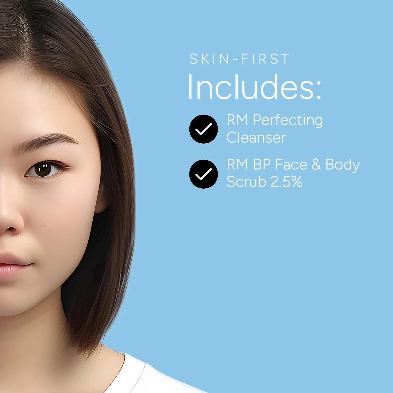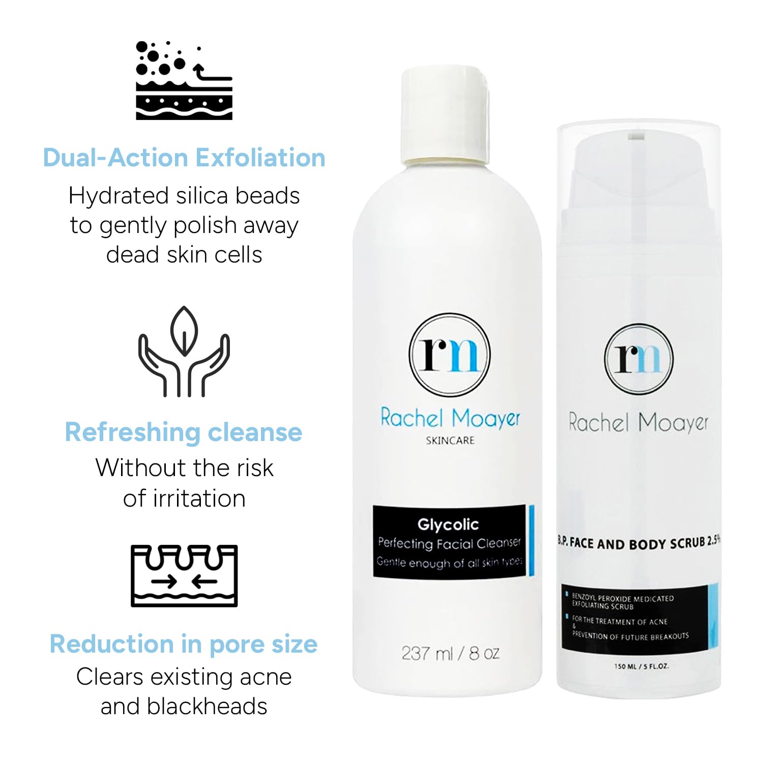 Rachel Moayer Skincare Cleansing Essentials Bundle includes RM Perfecting cleanser and RM BP Face & Body Scrub 2.5%