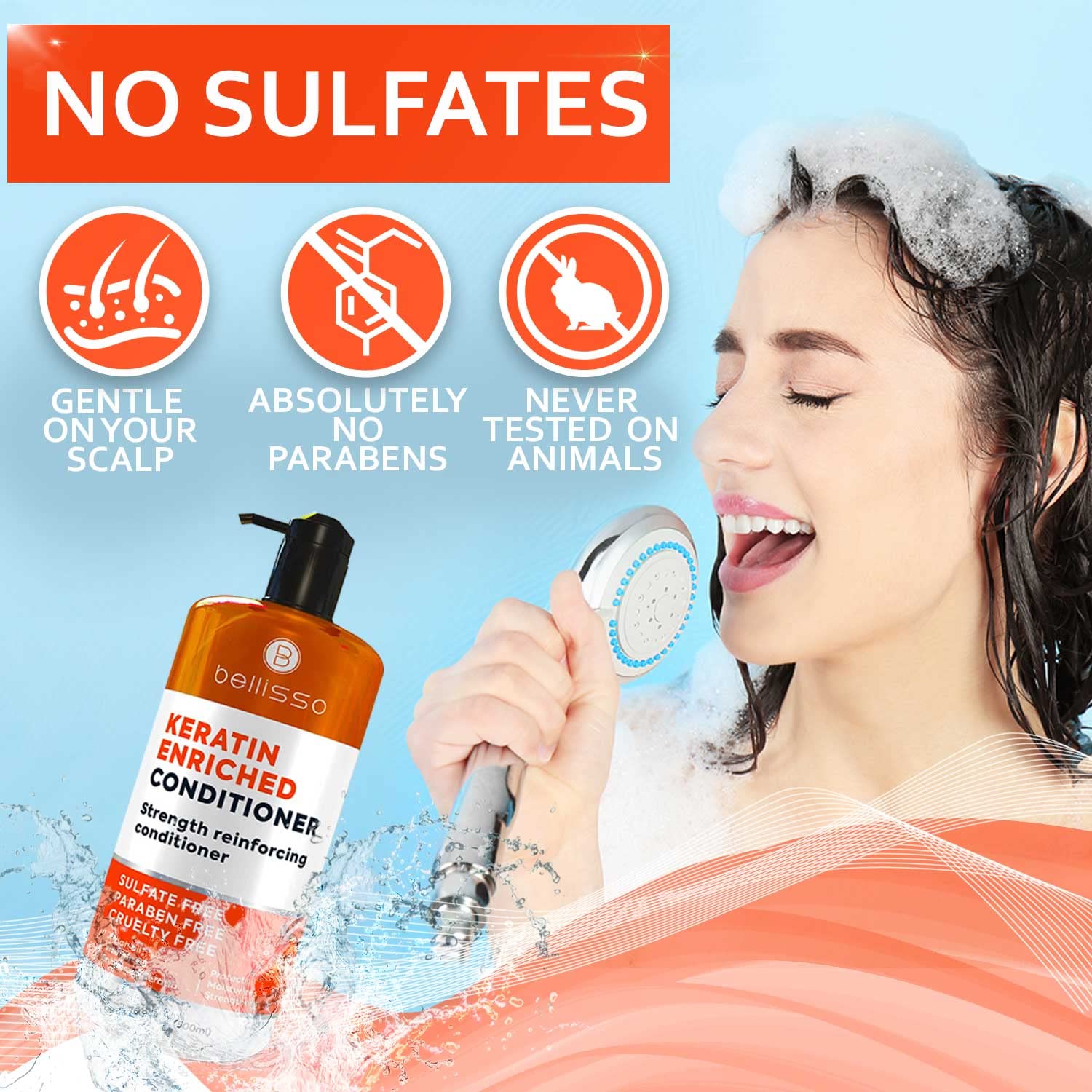 • AMAZING SHINE: The secret to how our hair care products for women and men create dazzling shine is the way that the keratin binds to each strand. The keratin in Bellisso’s deep hair conditioner actively works to smooth flyaways and frizz, leaving you with Hollywood style hair that turns heads