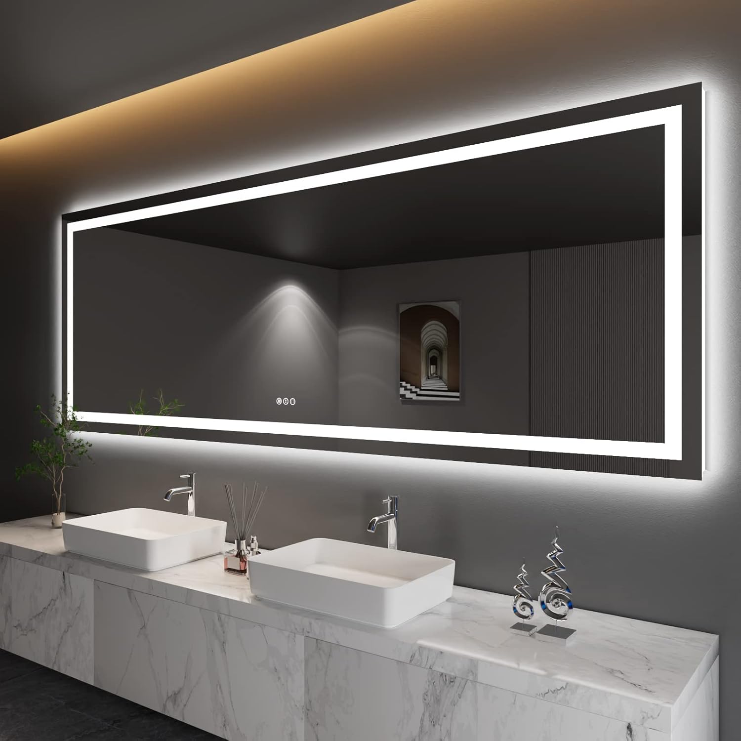 Amorho LED Bathroom Mirror 110" X40" with Front and Backlit, Stepless Dimmable Wall Mirrors with Anti-Fog, Shatter-Proof, Memory, 3 Colors, Double LED Vanity Mirror Large
