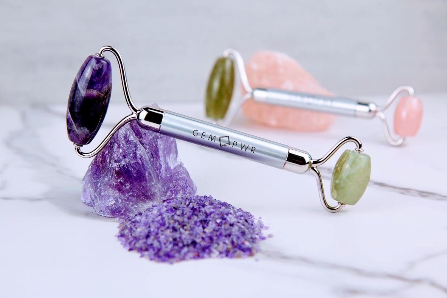 • AMETHYST + JADE DUAL HEAD 2-IN-1 FACIAL ROLLER: No need to buy two rollers as this one offers premium construction and two high-quality gemstones to calm inflammation, brighten your complexion, boost blood flow, and stimulate lymphatic drainage.
