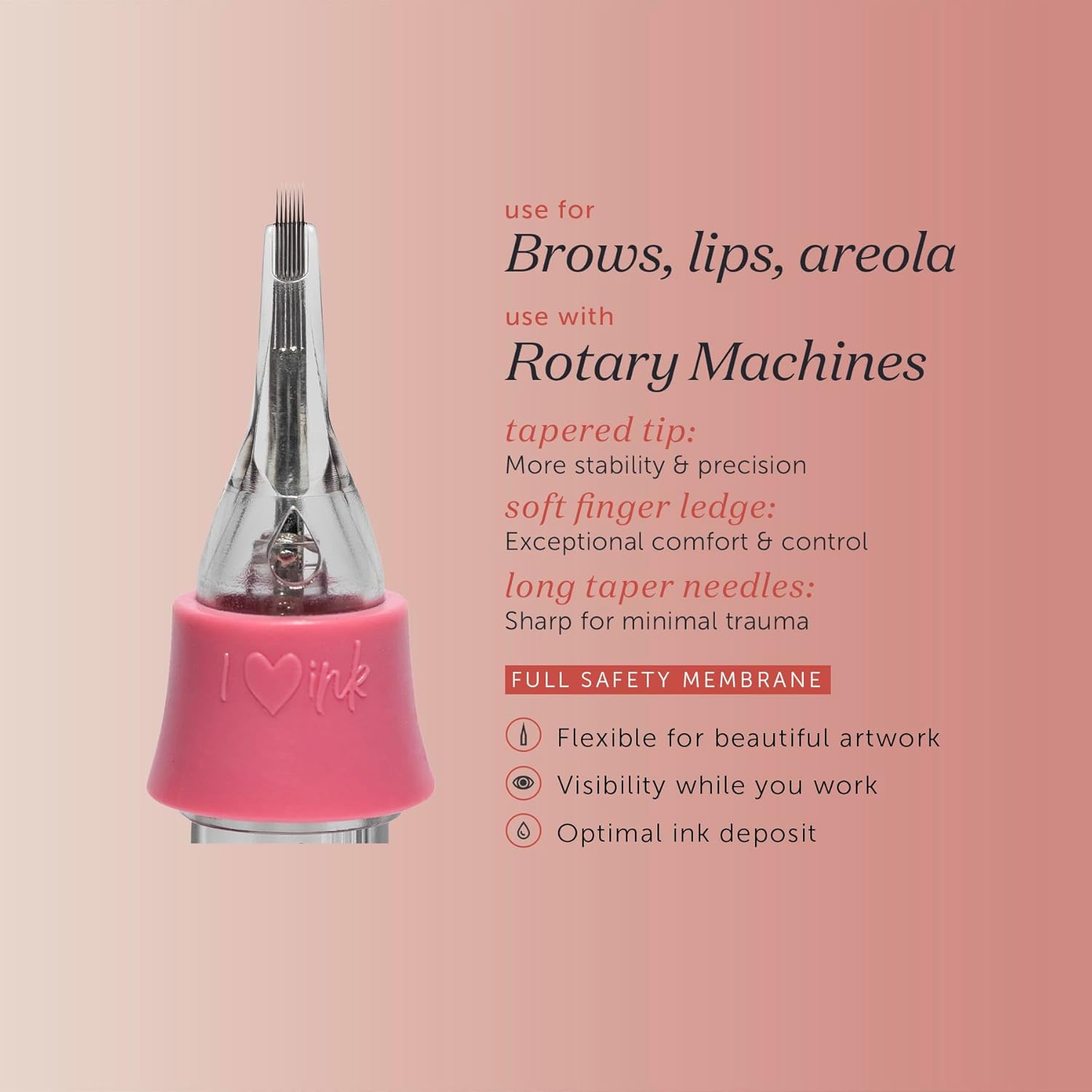 Tina Davies PIXL Cartridge, 7-Curved Magnum Long Taper Cartridge for Eyebrows, Lips, Eyelids, and Areolas .25mm 7CMLT, Pack of 10