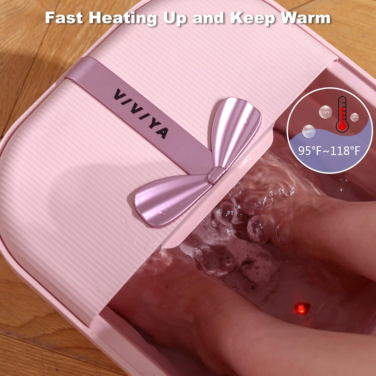• 【Foot Bath Spa Massager with Heat】With the VIVIYA collapsible foot spa massager, you and your family can enjoy a relaxing foot massage at home at any time. Equipped with massage rollers and shiatsu massage points to reduce pressure on the feet and relax the muscles. This foot bath tub heats up quickly and maintains a temperature between 95°F~118°F when water is added.