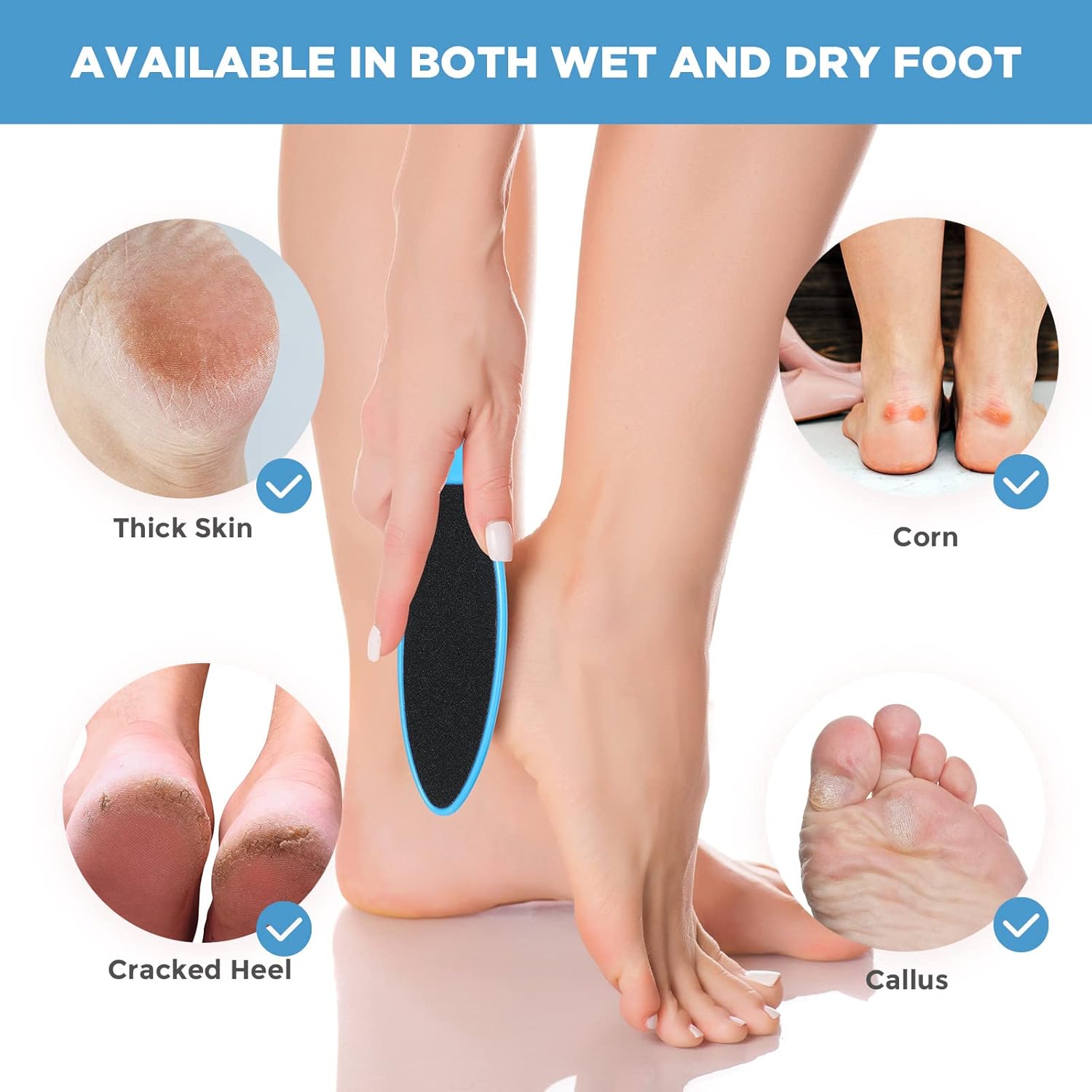 • Double Sided: our pedicure foot file has 2 sides with sandpaper surfaces which can both be applied, it can remove your dead skin, handle with your dry feet, calluses and more, also help to develop soft and smooth feet