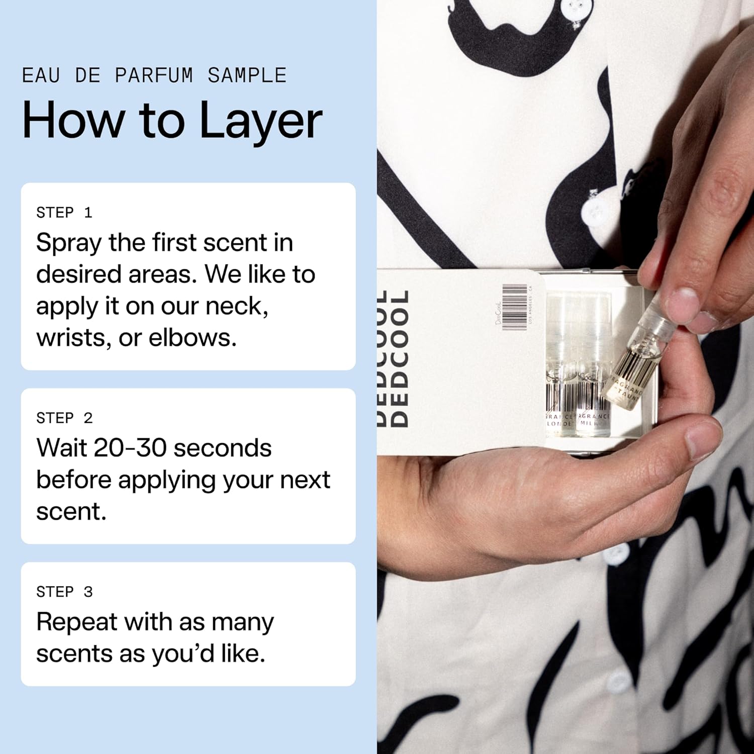 • FRAGRANCE DISCOVERY SET: Explore 6 DedCool minis in one reusable tin, featuring Xtra Milk, Milk, 01 Taunt, 03 Blonde, Madonna Lilly, and Red Dakota, perfect for sampling or gifting.