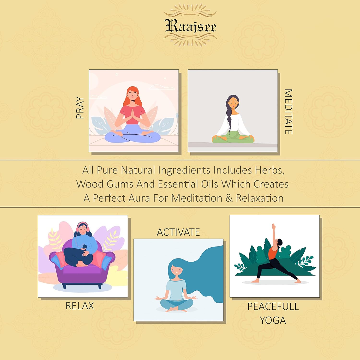 • PRODUCTION METHOD - Hand rolled in India with Indian traditional techniques which lasts longer. Raajsee all natural incense utilizes fair trade labor and environmentally responsible production methods to give you the best incense. We let you be assured that it is free of nasty chemicals like charcoal and other accelerants