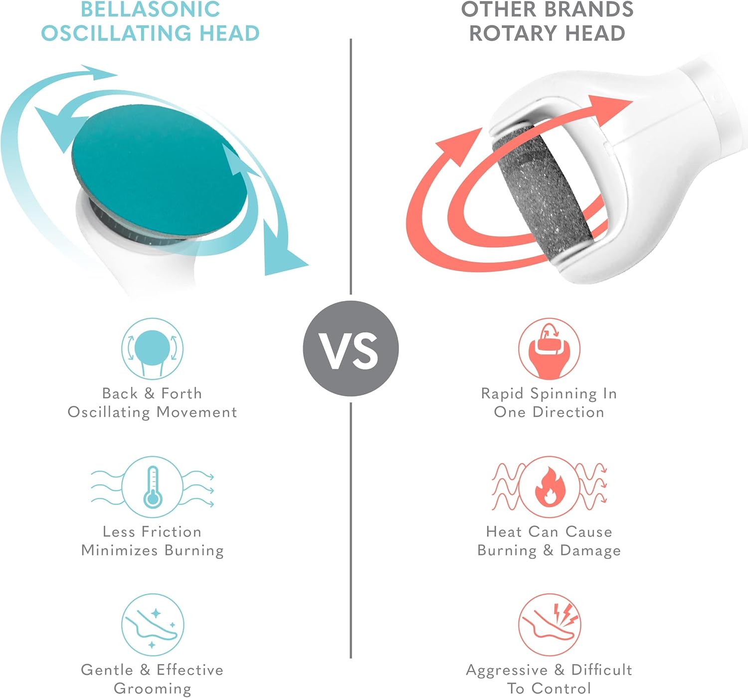 • UNIQUE, OSCILLATING HEAD rotates back and forth, rather than spinning all the way around, to prevent excess HEAT and BURNING caused by other fast-spinning foot files.