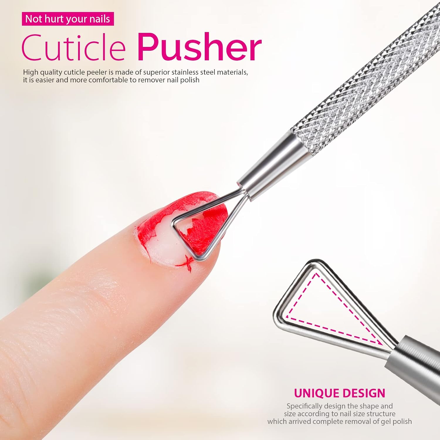 • Nail Gel Remover Kit: Gel nails removal is not easy part. You need to remove gel polish but nail salon will spent lost of time. And we provide the soak off nail clips kit, can remove gel nail at home Include tool for soak, dissolve, and remove gel polish. Nail file, nail brushes, nail remover pads, nail clips, cuticle pusher and buffer block