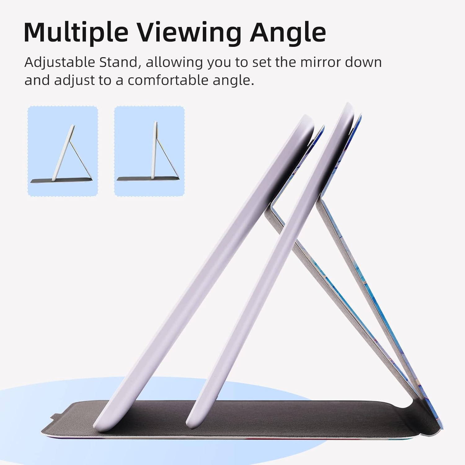 • ๐Ÿ›ฉ๏ธ๐๐จ๐ซ๐ญ๐š๐›๐ฅ๐ž ๐“๐ซ๐š๐ฏ๐ž๐ฅ ๐Œ๐š๐ค๐ž๐ฎ๐ฉ ๐Œ๐ข๐ซ๐ซ๐จ๐ซ:This makeup vanity mirror in ipad mini size with lights in folding design.The slim, lightweight,compact design with a Leather protection makes the Eclipse your new travel buddy.It is easy to put this travel mirror into your cosmetic bag without any broken worries,you can take it everywhere for makeup conveniently.And have sturdy standing, can stand stable on the table or any flat surface