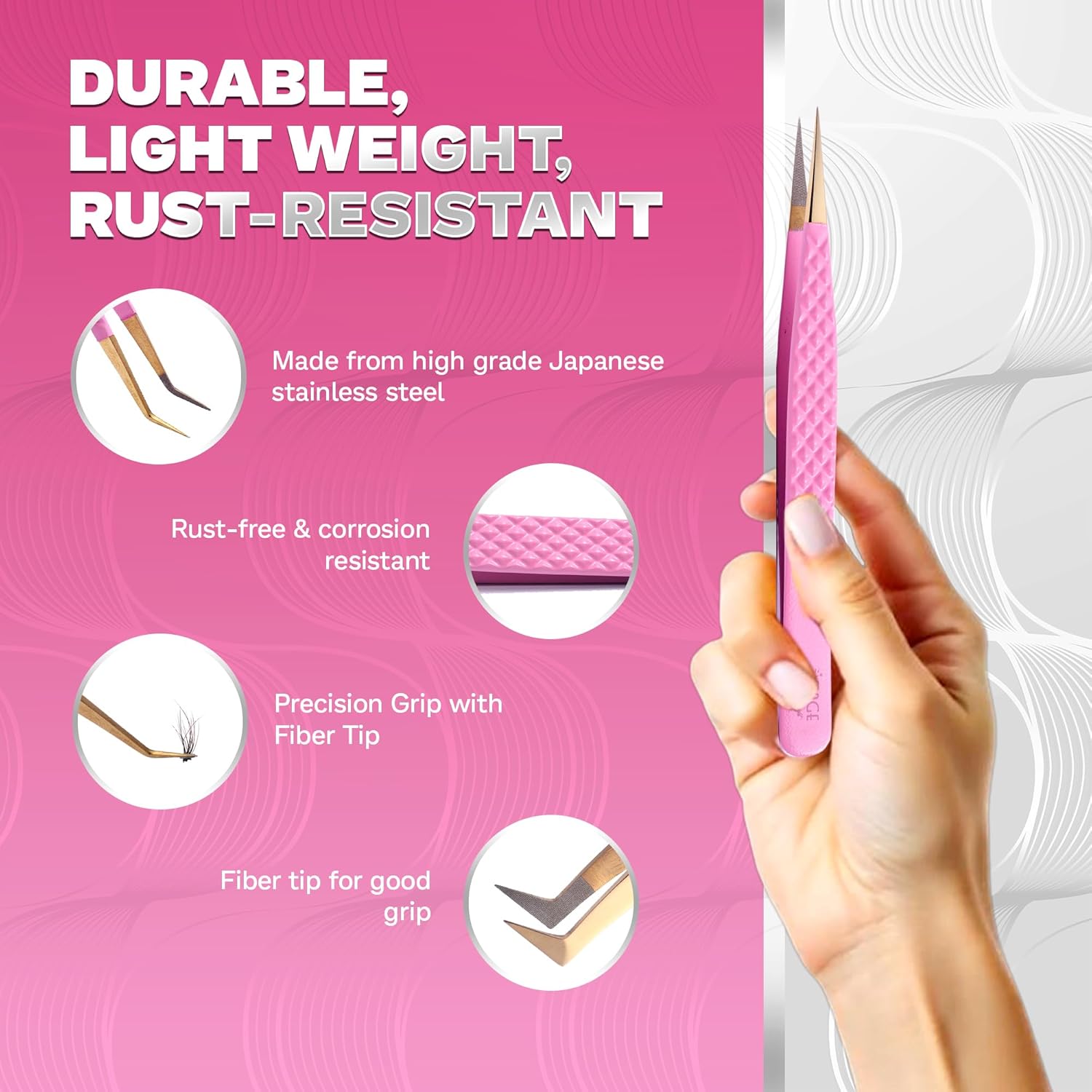 • Ultra-fine fiber tips for maximum precision engineered with fiber tips that securely grip even 0.03mm lashes without slipping. These volume lash tweezers are ideal for creating fans, isolating lashes, and applying classic or volume eyelash extensions with accurate precision