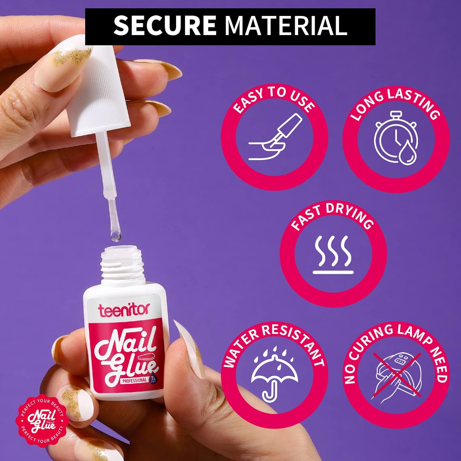 • Super Strong & Dry Quickly: Our Teenitor 7g strong nail glue for press on nails is made of premium quality pink glue which is different from others, strong adhesive allow long lasting to 14-21 days-Easy to Use, Long Lasting , Fast Drying, Water Resistant and No Curing Lamp Need; seal design of bottle will not leak easily and better keep the glue
