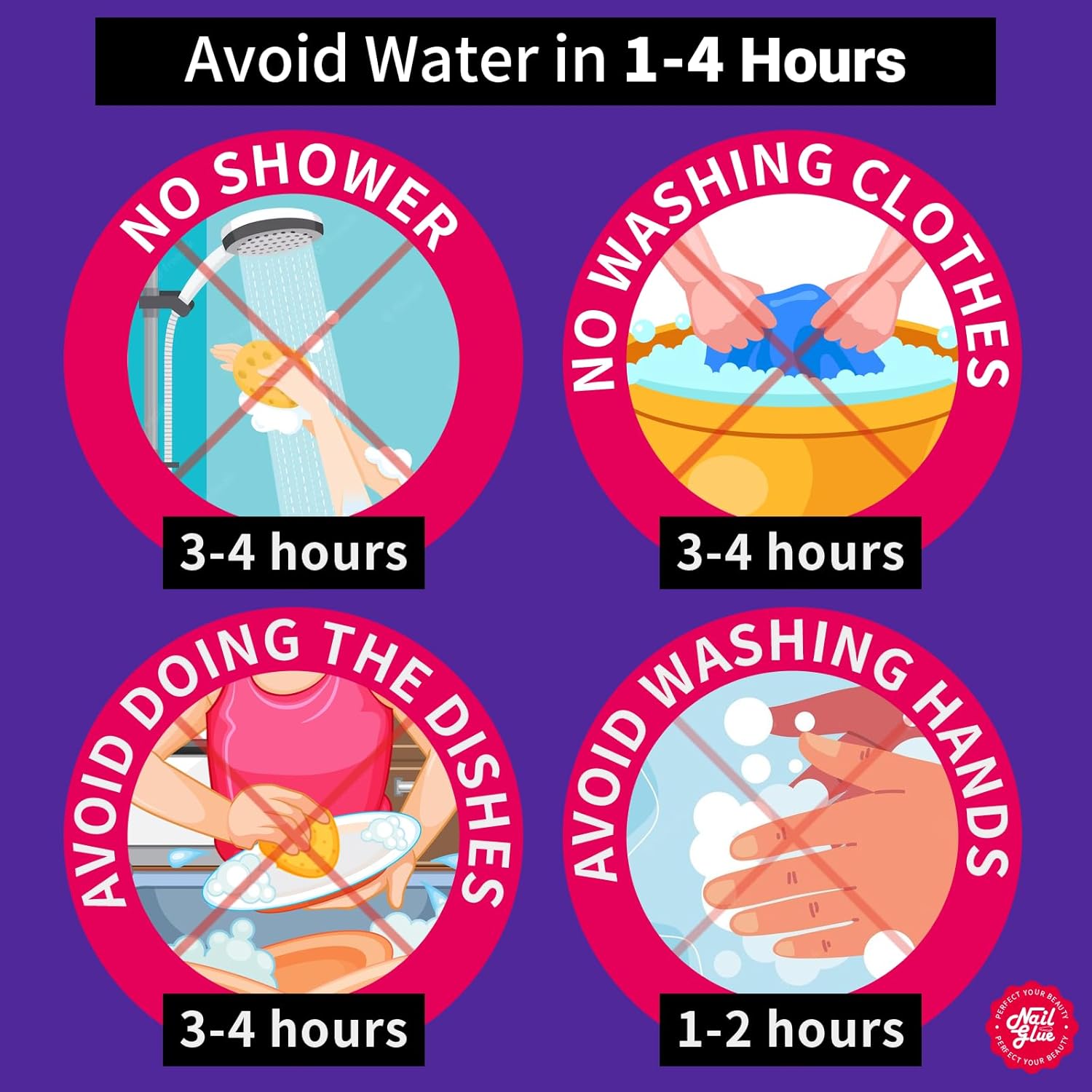 • Tips for Better Stickiness & Longer Lasting: Please avoid touching water in 1-4 hours, especially take a shower, wash clothes or do the dishes, avoid washing your hands in 3 hours after applying nail glue; you can use nail file to file your nail bed to make it rough then apply nail glue will get better stickiness