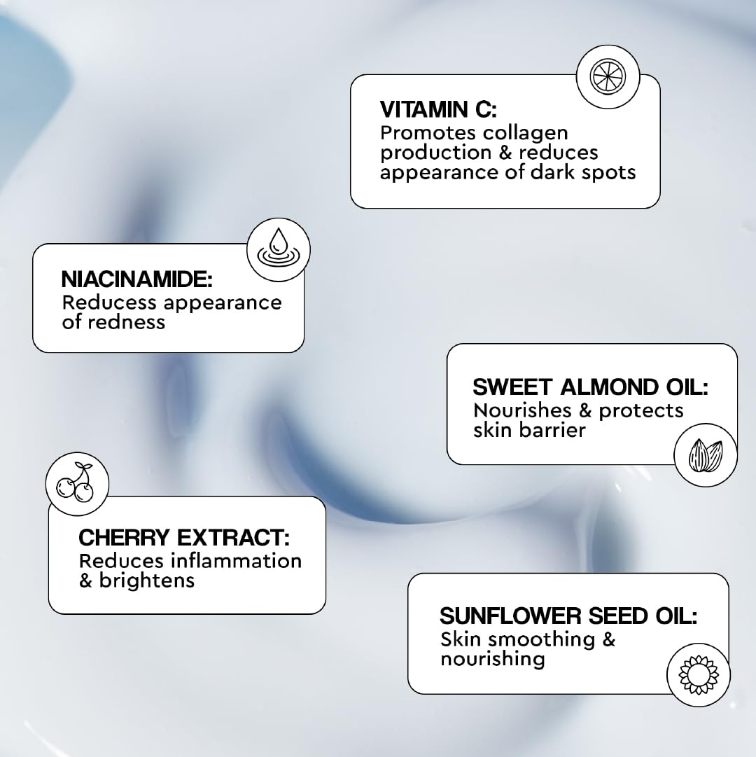• Infused with skincare ingredients like vitamin C, niacinamide and cherry extract to help brighten skin while locking in moisture for all-day hydration