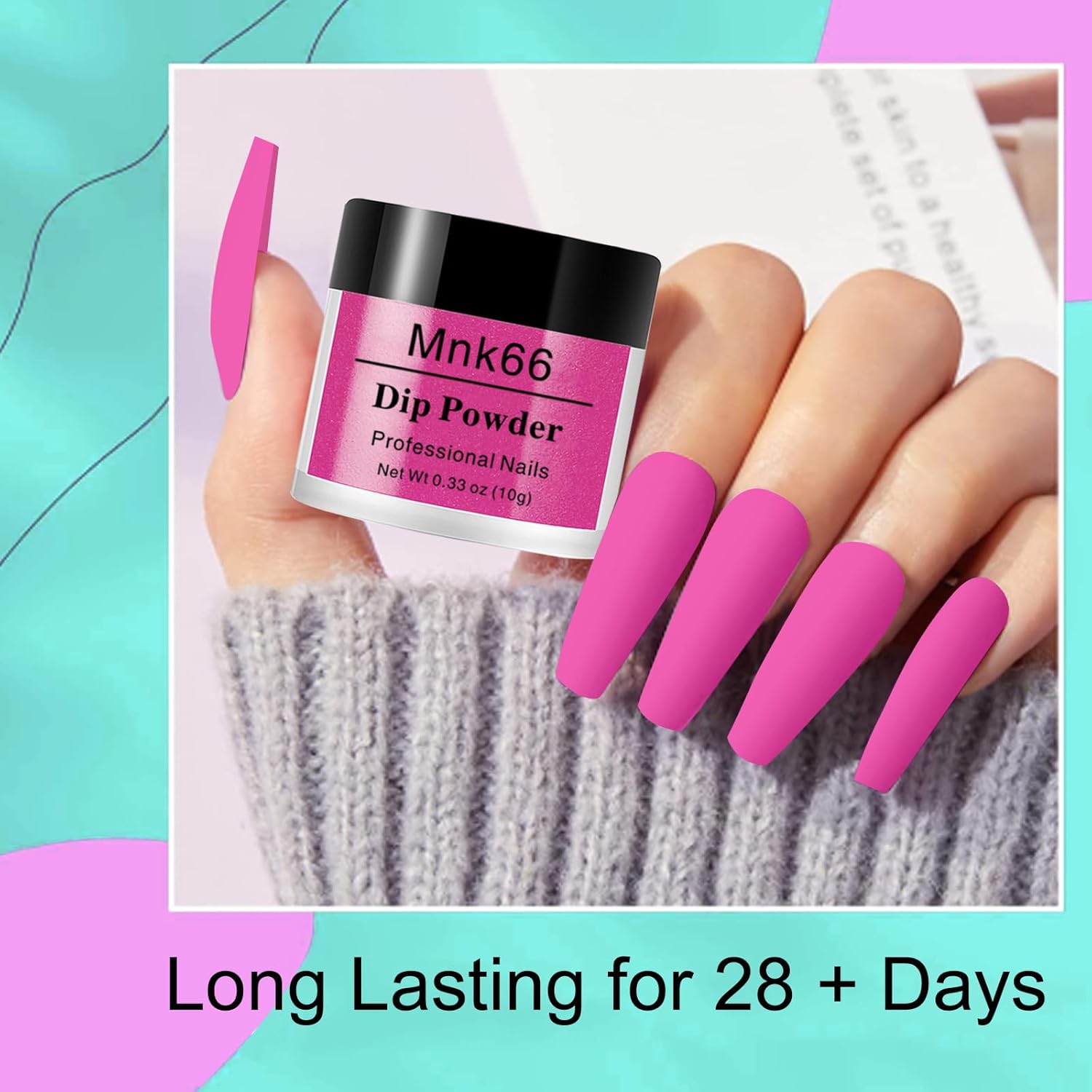 • EASY TO USE - Mnk66 Neon Nail Dip Powder Summer colors set doesn't need LED nail lamp to cure, dry faster and skin-friendly, smooth and even with glossy and natural effect. More long-lasting than other regular dip powders. Easy to apply with dip liquid, suitable for beginners and professional nail salons. TIPS - The effection of dip powder will be showing different between 2~3 coating.