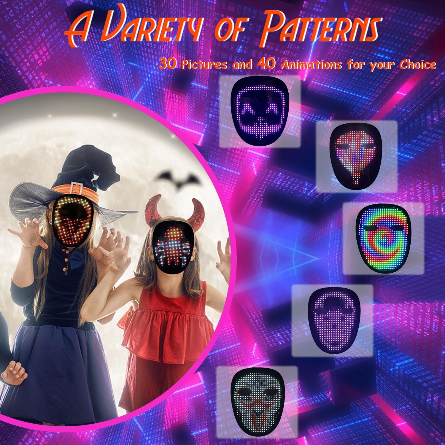 • Led Mask Has 40 Dynamic Display Modes And 30 Static Display Images, led full face mask Is Most Amazing Costumes&Cosplay Apparel mask,Attract Everyone's Attention.