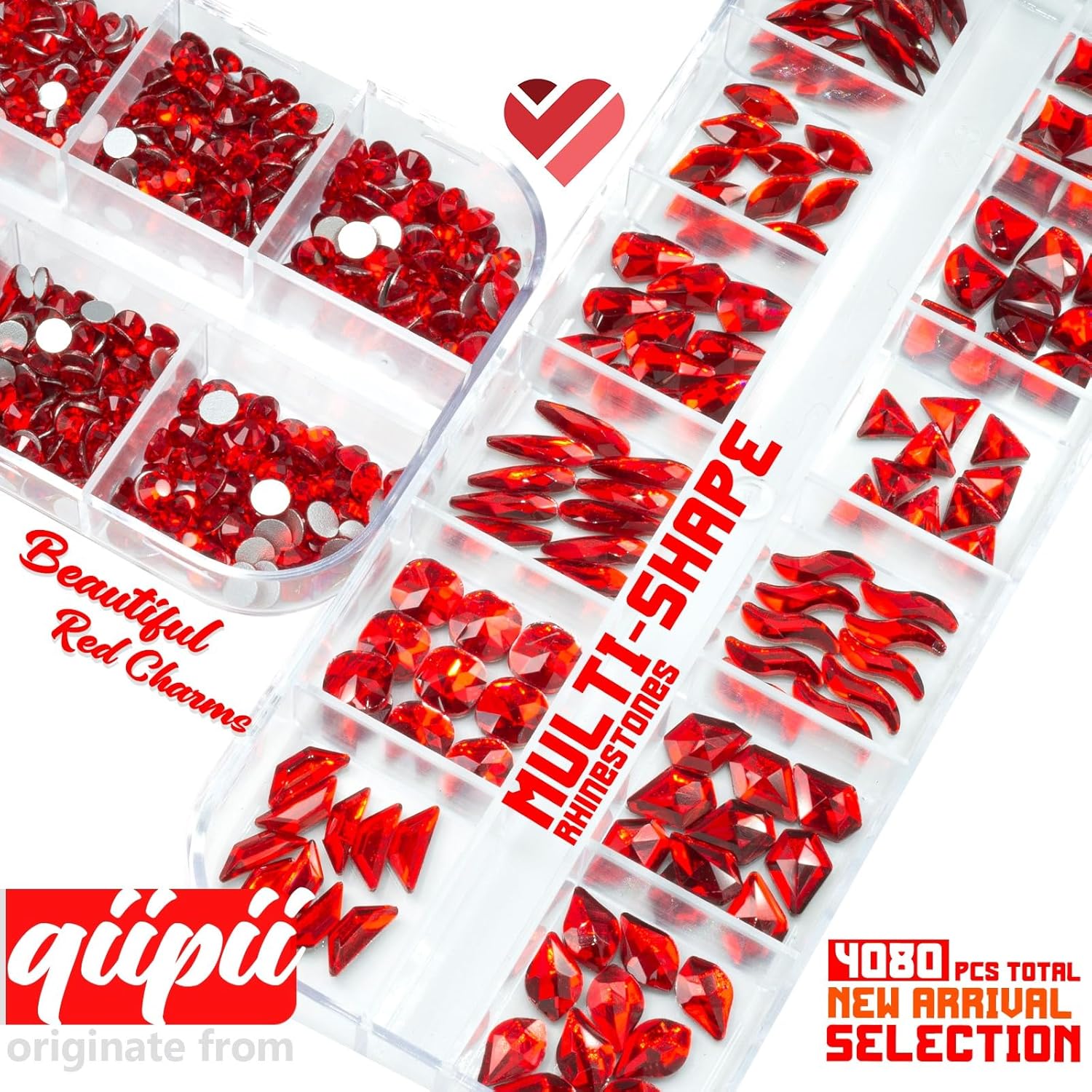 • ❤【4080Pcs More Quantity Crystal Red Nail Rhinestones + Stainless Steel Tweezer + Pickup Pen】Total 4080pcs sparkling Siam Red rhinestones nail crystals. Including 120pcs multi-shaped crystal rhinestones, 3960pcs multi-sized round crystal gem rhinestones. Enough amounts and more shape options for your daily work, go out or other decoration purposes. Comes with 1 Stainless Steel Tweezer and Pickup Pen for Manicure DIY Decoration at Home Salon Supplies.