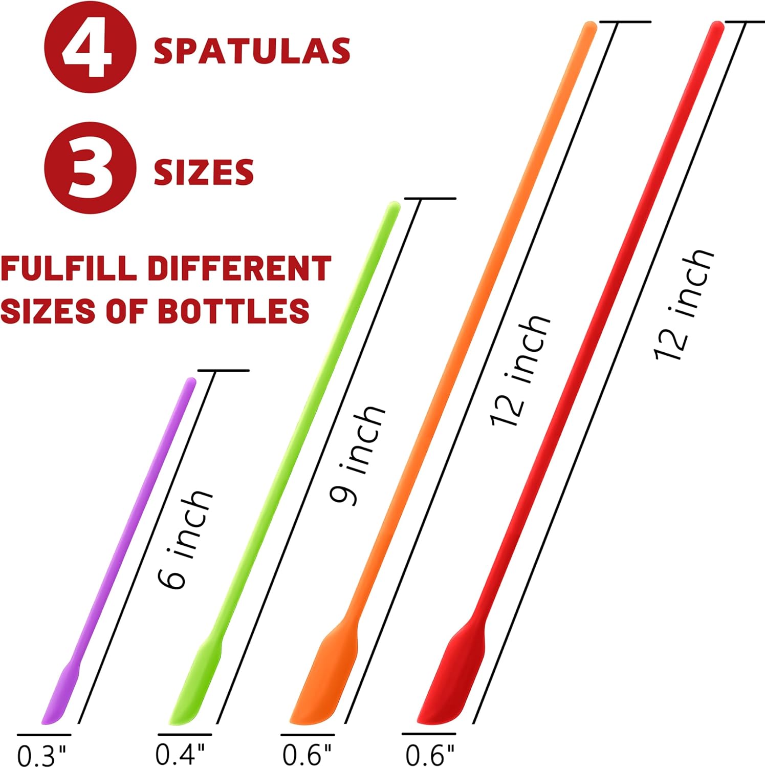 • FLEXIBLE SPATULA - Anaeat silicone spatulas designed with narrow soft heads and long body that can reach many bottles and jars to get every drop out of your container. UPGRADED PROPER BALANCE BETWEEN FLEXIBLE AND STURDY