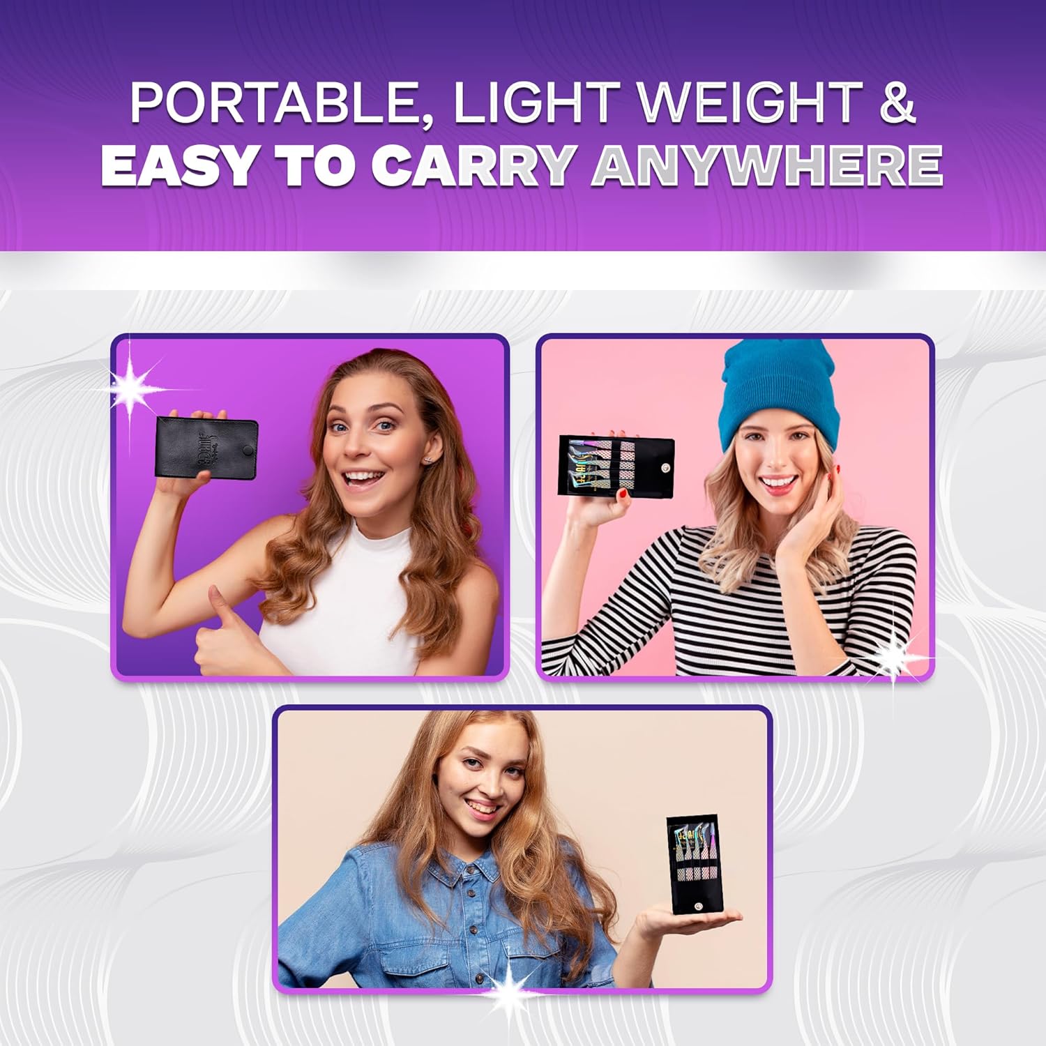 • 5 in 1 Tweezer set with travel case includes 90° Volume, 45° Isolation, Curved, Pointed, and Classic Volume Tweezers—each with a protective cap. Comes in a sleek leather pouch for travel-friendly storage