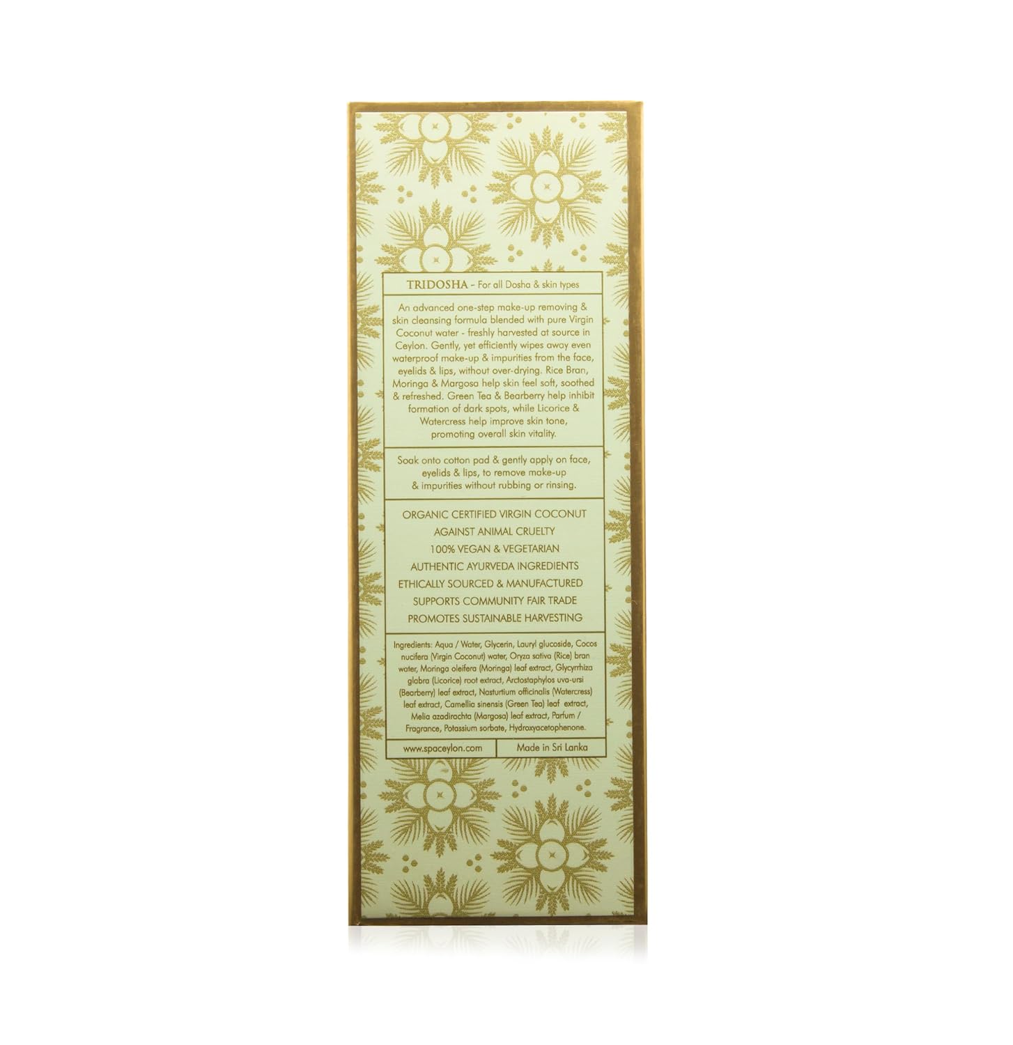 • An advanced one-step make-up removing & skin cleansing formula blended with pure Virgin Coconut water - freshly harvested at source in Ceylon.