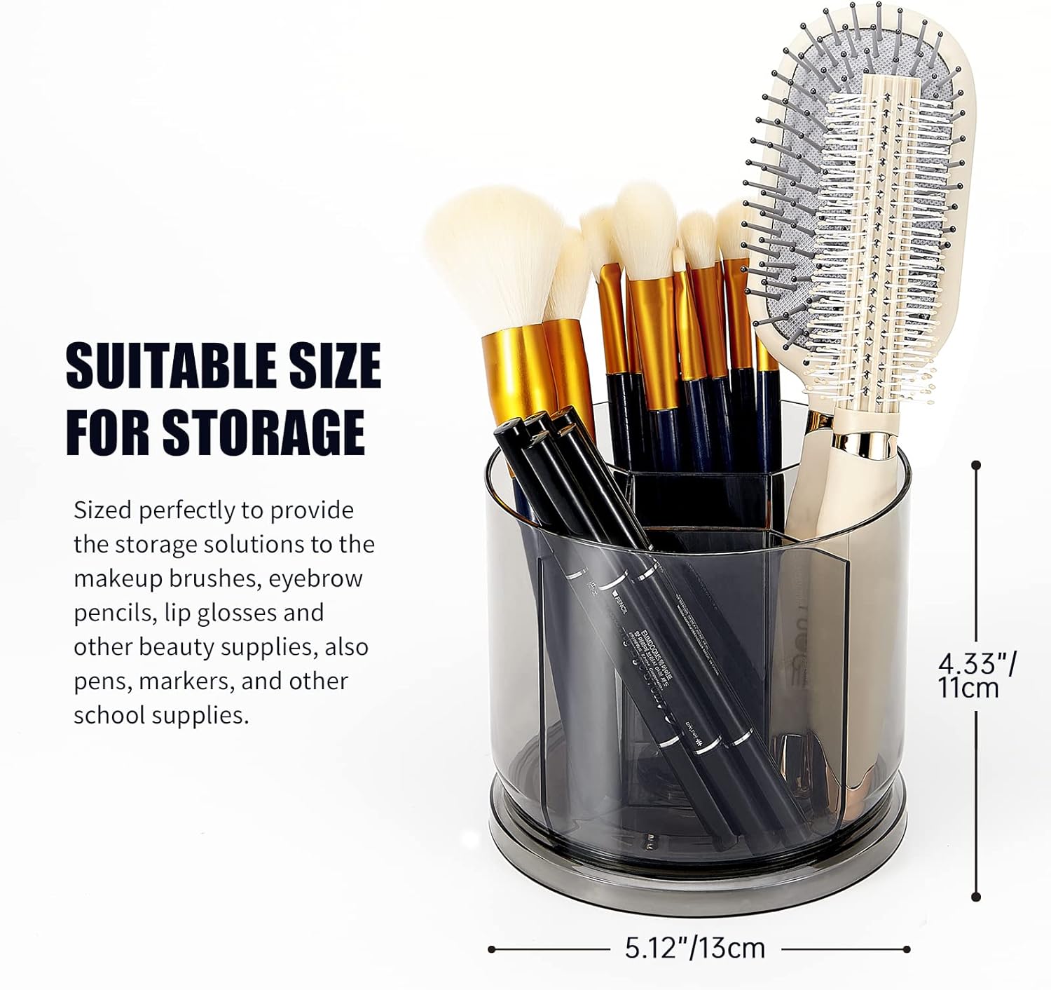 • ★PERFECT RIM HEIGHT: Measuring 4.33 inches, this round container is suitable for storing vanity accessories, school and office supplies, ensuring a secure spin. Whether placed on a bathroom countertop, office desk, children's desk, pantry, or shelves, it's a great choice.