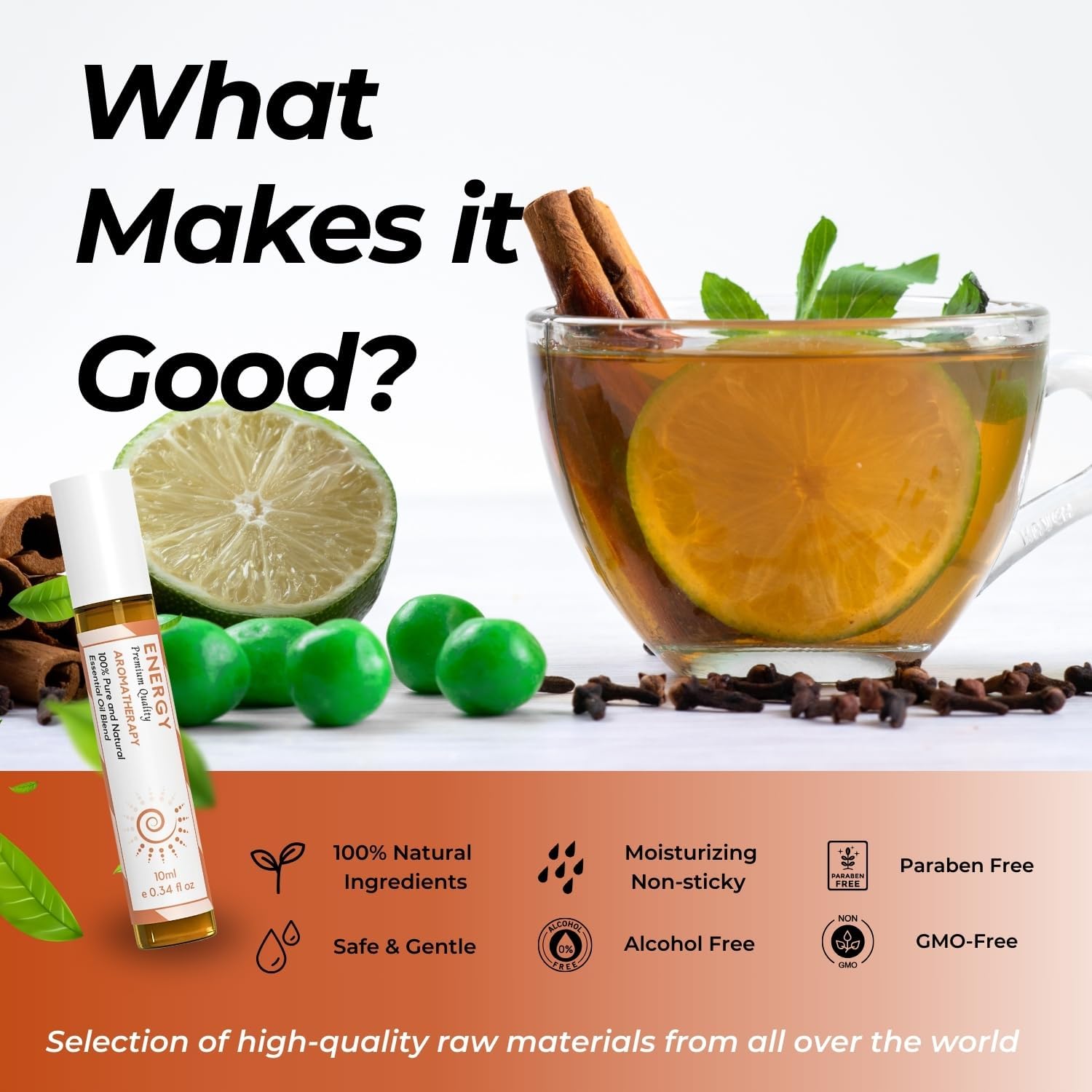 Benatu Energy Essential Oil Roll On Blend (with Clove, Lemon, Grapefruit Oil)- Travel Size Relaxing Roller for Body Topical Massage, Natural Scent Aromatherapy Gift for Women & Men 10ml