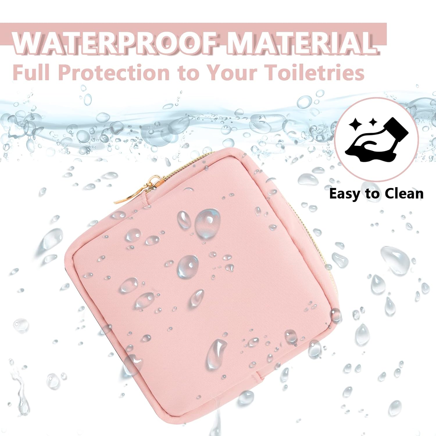 • 【High Quality Material】The cosmetic bag is constructed of lightweight and durable nylon fabric. It is waterproof and easy to clean, helping to protect your beauty, cosmetics and toiletries from water spillage accidents.It will not lose color after the wash.