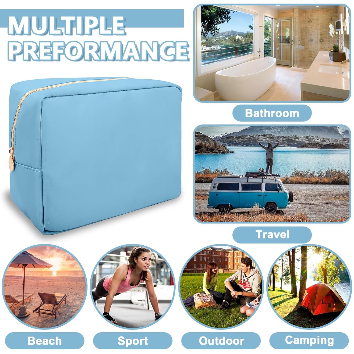 Large Makeup Bag Pouch,Nylon Women Travel Toiletry Storage Bag Preppy Cosmetic Bag for Girls,Big Makeup Organizer Bag Cute Zipper Pouch Skincare Bag for Sport Work Gift(Large-Periwinkle)