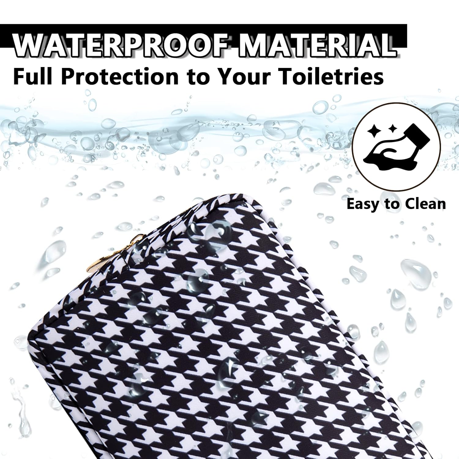• 【Multiple Options】The waterproof makeup bag has four sizes, Mini(4.75''*2''*5''), Small(9.5''*2''*5''), Large(11''*5''*8'') and Slim(2.75*8''*2.75''). You can choose the right size according to the items you want to store. We have four types of patterns, Pink Heart, Houndstooth, Checkerboard grid and White Heart. You can enjoy choosing the pattern you like.