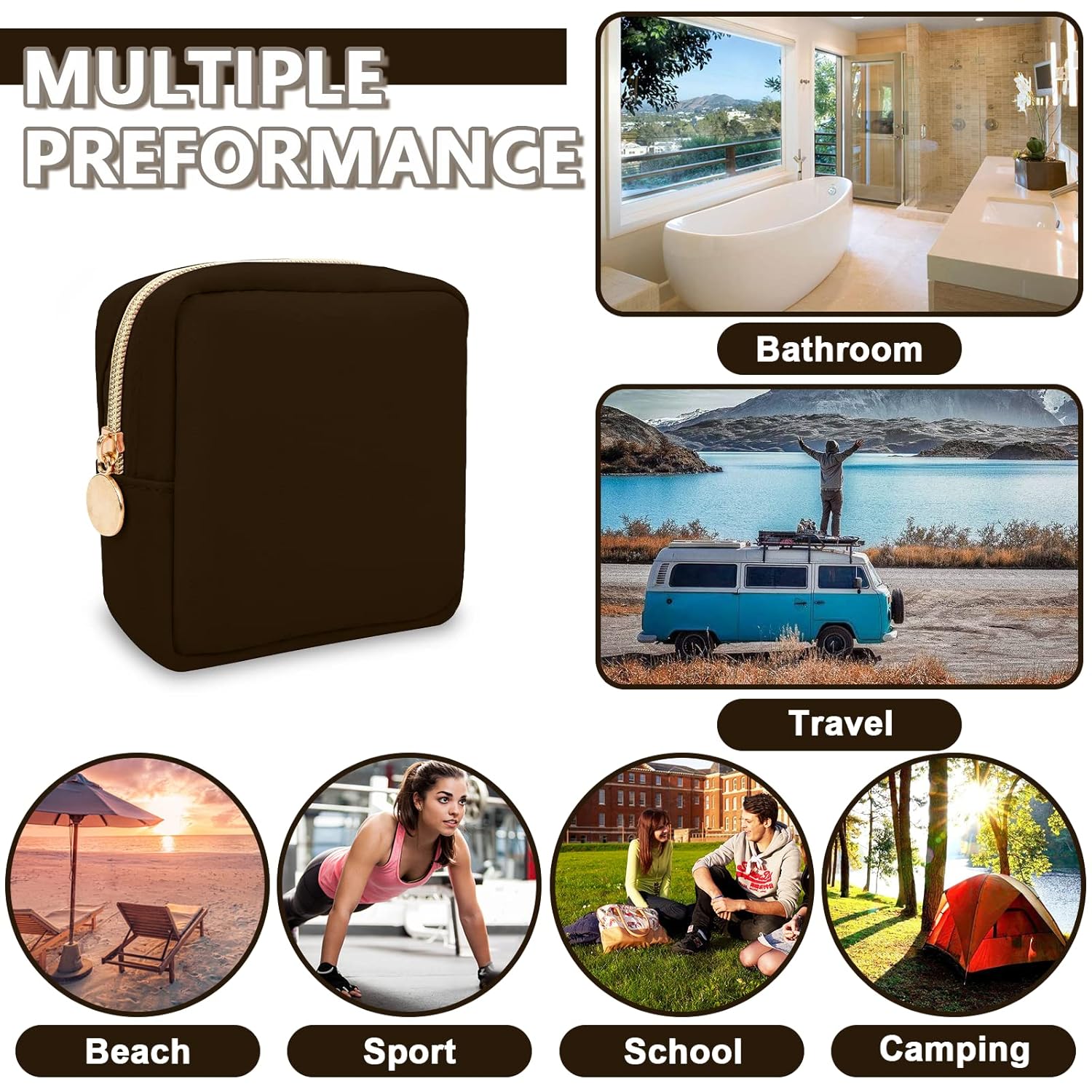 Mini Makeup Pouch for Purse, Small Cosmetic Bag Pouch Nylon Travel Toiletry Organizers Bag for Women Girls, Cute Zipper Coin Purse Preppy Storage Purse for School Work(Mini-Chocolate)