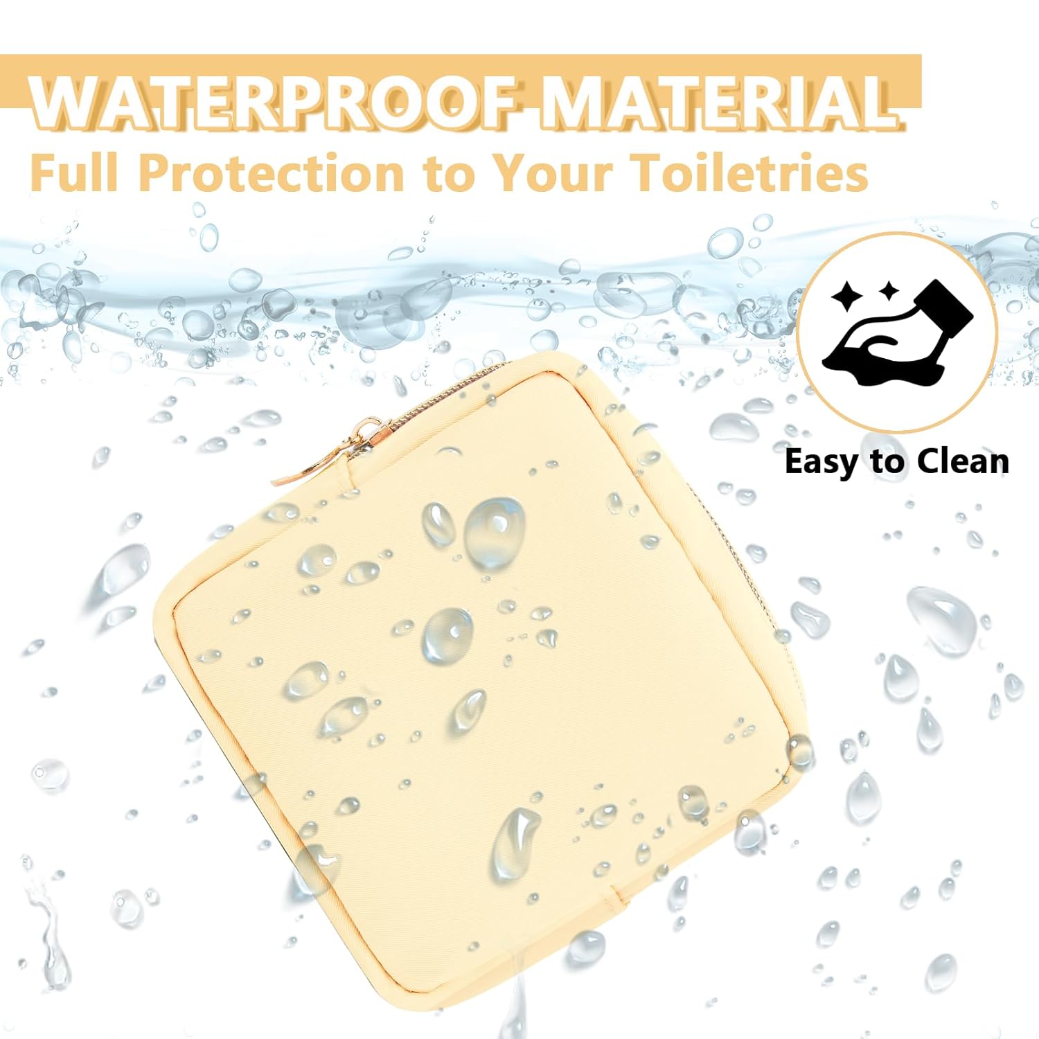 • 【High Quality Material】The cosmetic bag is constructed of lightweight and durable nylon fabric. It is waterproof and easy to clean, helping to protect your beauty, cosmetics and toiletries from water spillage accidents.It will not lose color after the wash.