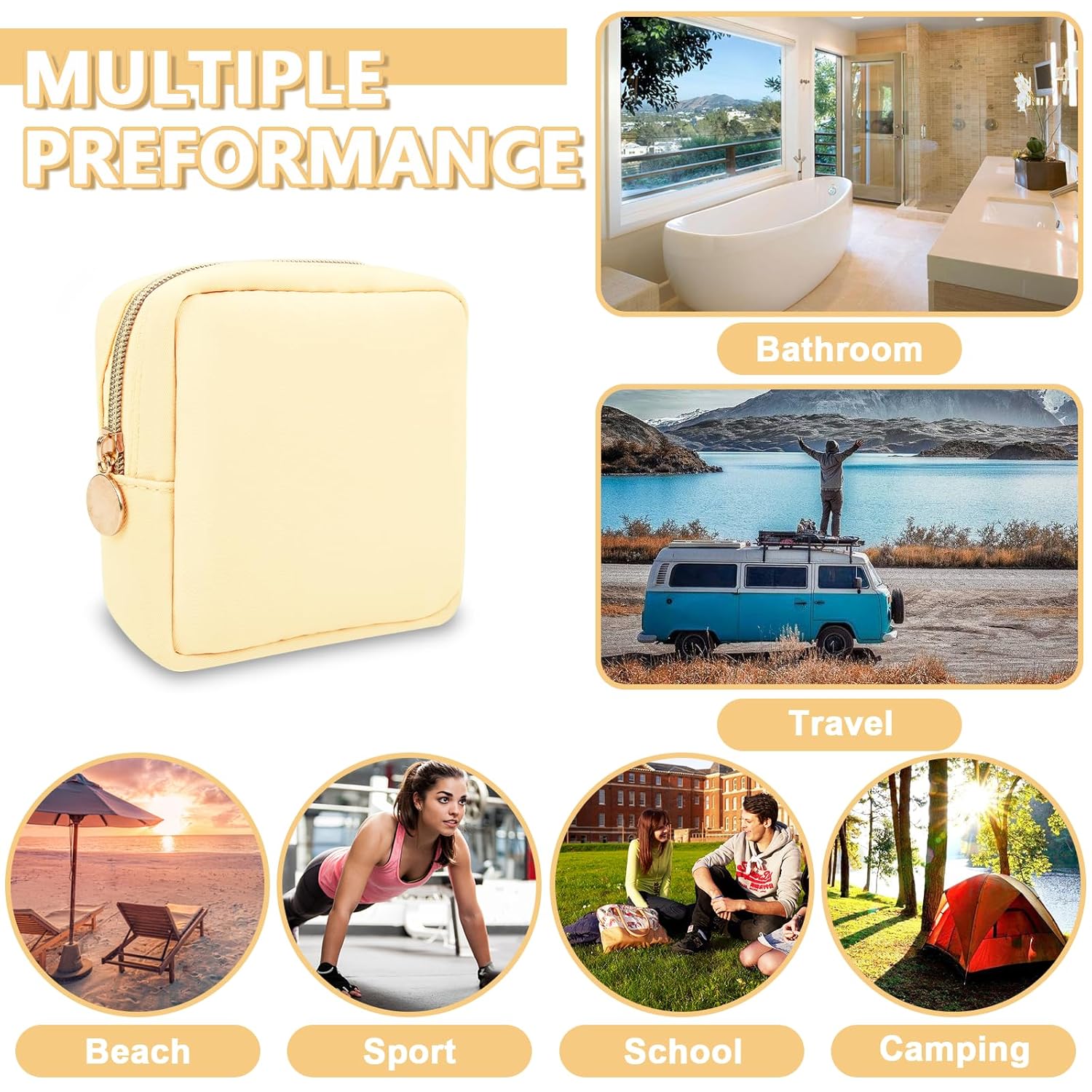 • 【Multi-purpose】The preppy makeup bag makes it easy to pack and carry cosmetics, jewelry, sanitary napkins, brushes, pencils, small electronic accessories, toiletries, medications, tools or other travel essentials. It's a great bag for school, travel, parties, camping, beach, gym, etc.