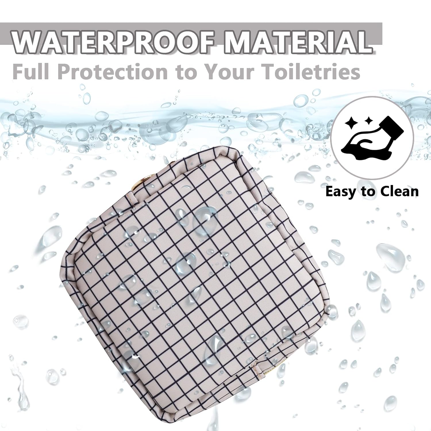 • 【Multiple Options】The waterproof makeup bag has four sizes, Mini(4.75''*2''*5''), Small(9.5''*2''*5''), Large(11''*5''*8'') and Slim(2.75*8''*2.75''). You can choose the right size according to the items you want to store. We have four types of patterns, Pink Heart, Houndstooth, Checkerboard grid and White Heart. You can enjoy choosing the pattern you like.