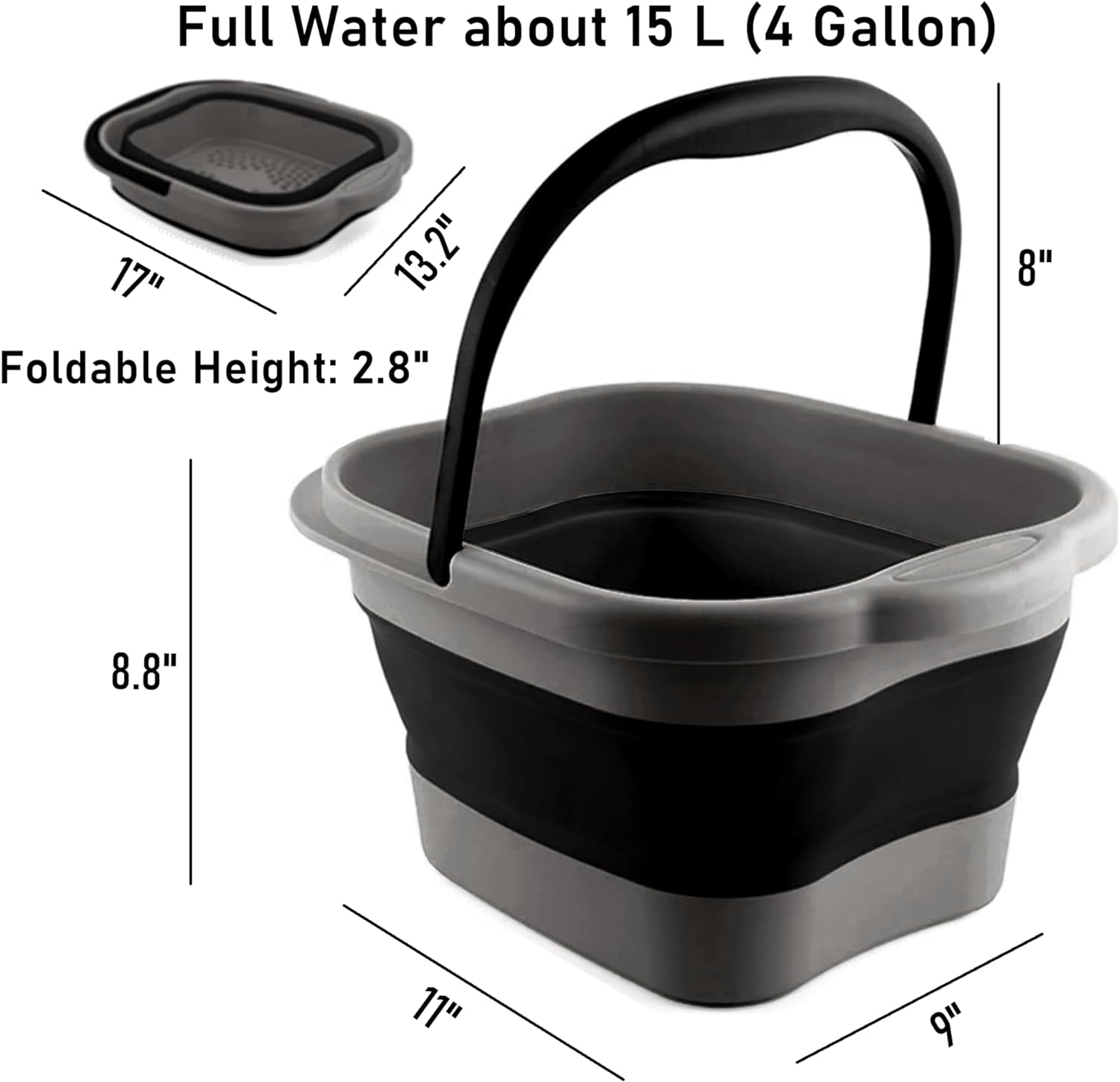 • MULTI-FUNCTION COLLAPSIBLE BUCKET: Large enough to soak your feet, also for household cleaning, car washing, harvest, garden, camping and travel, beach or hiking, etc. Suitable for using as storage container bin, mop bucket, small plastic basket tub, fishing bucket, ice bucket, wash tub, small laundry basket, dog cat pet bathtub. Sturdy handle make it easy to carry water ourdoor or indoor.