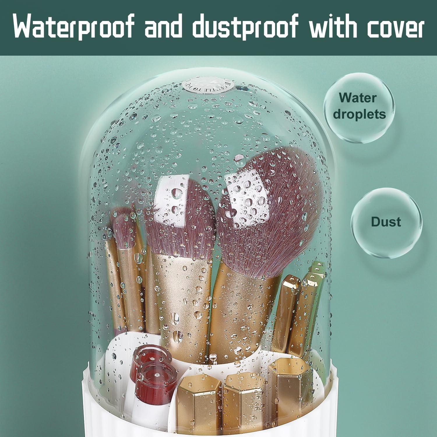 • Transparent Circular Lid: clear top cover design safeguard the items stored inside from dust and water droplets while showcasing your distinct and lovely cosmetics