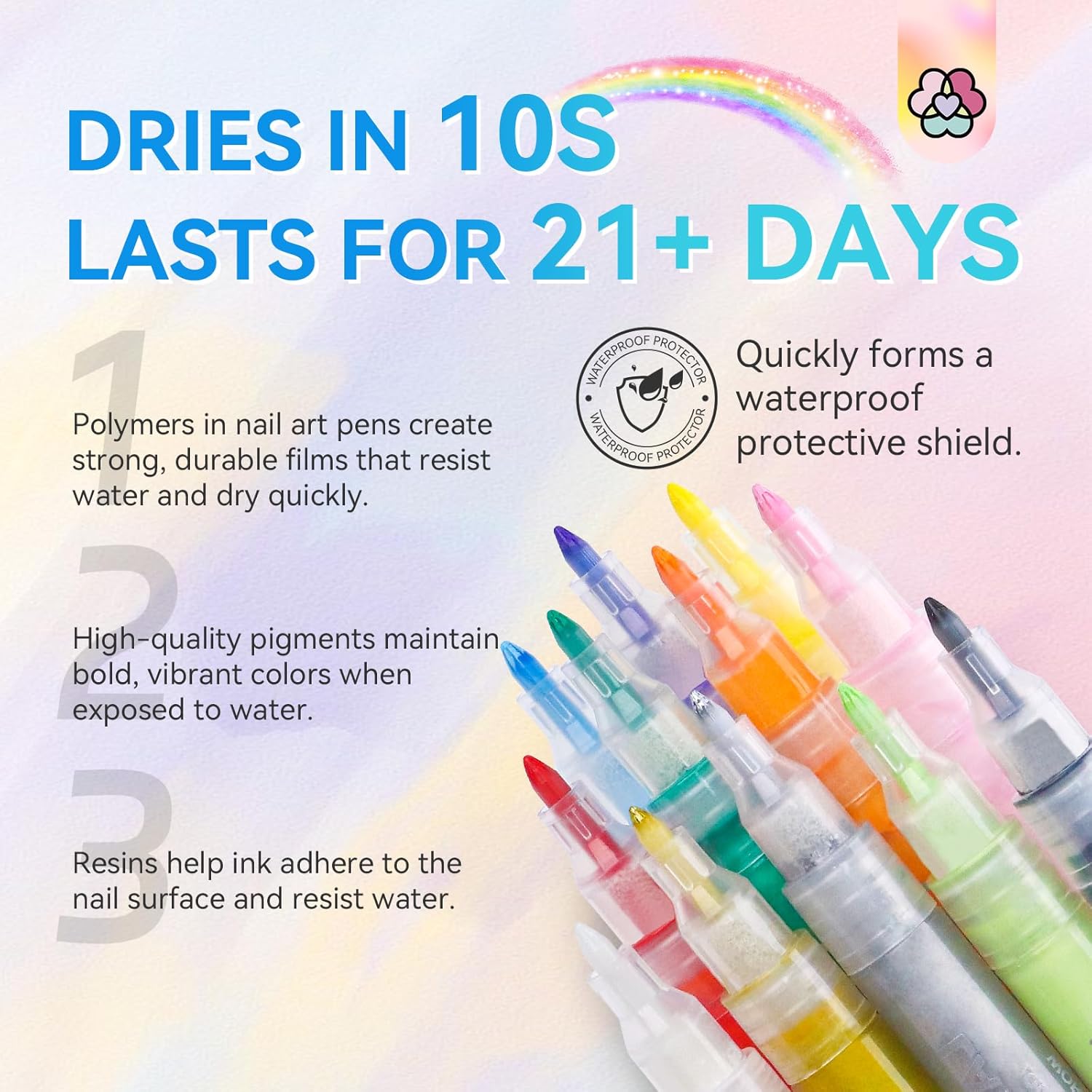 • LONG-LASTING & DURABLE: Saviland nail polish pens for nail art deliver long-lasting and durable results that won't chip or fade over time, even when exposed to water, heat, or humidity. This is vital for nail art, as it ensures that your designs stay intact and vibrant for longer periods.