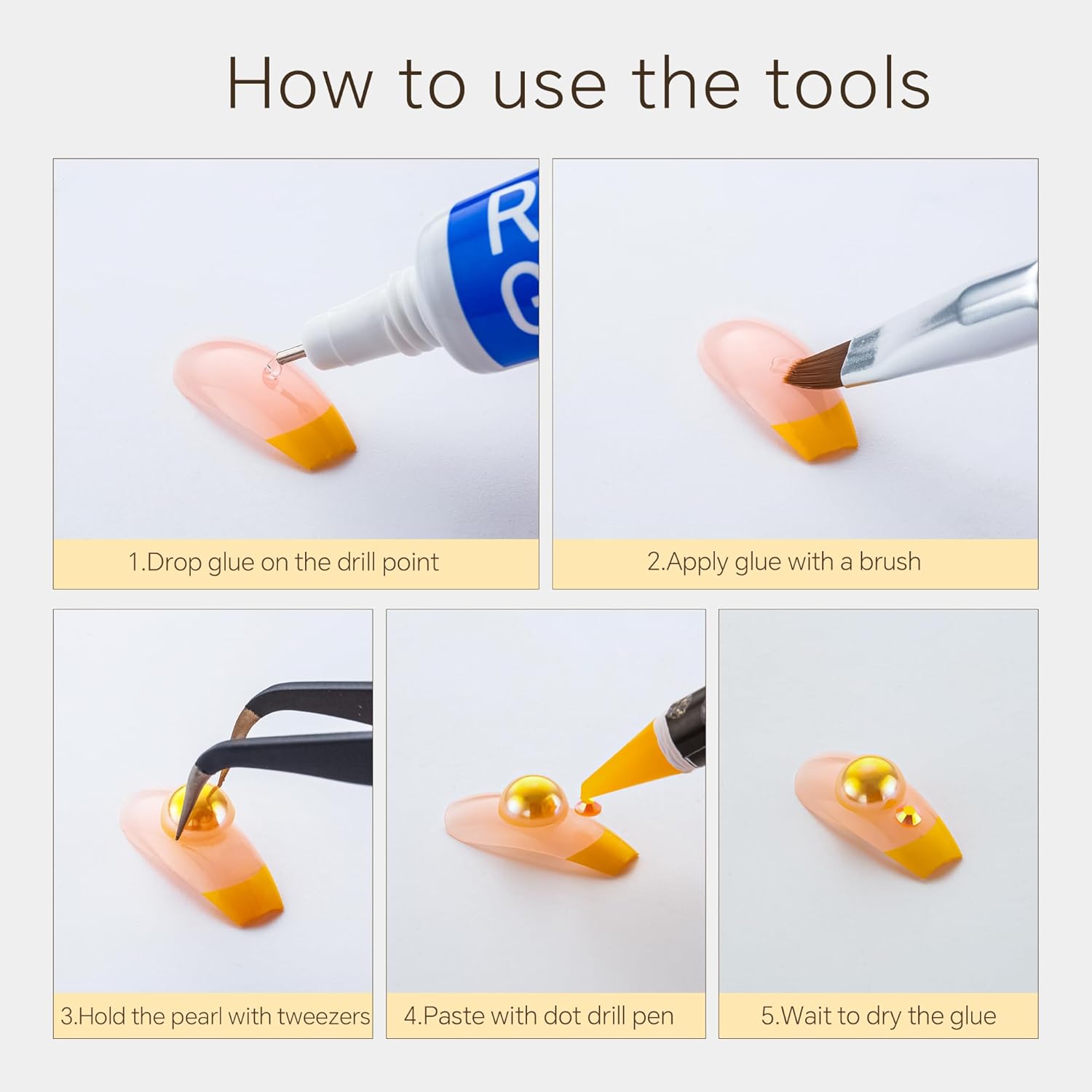 • Useful tools - These pearls and rhinestones have a flat back, which is excellent for easy placement.and you can pick up any large or small pearls and rhinestones with the crayons we bring along. And use the brush to smooth out the Gel, these tools will work very well
