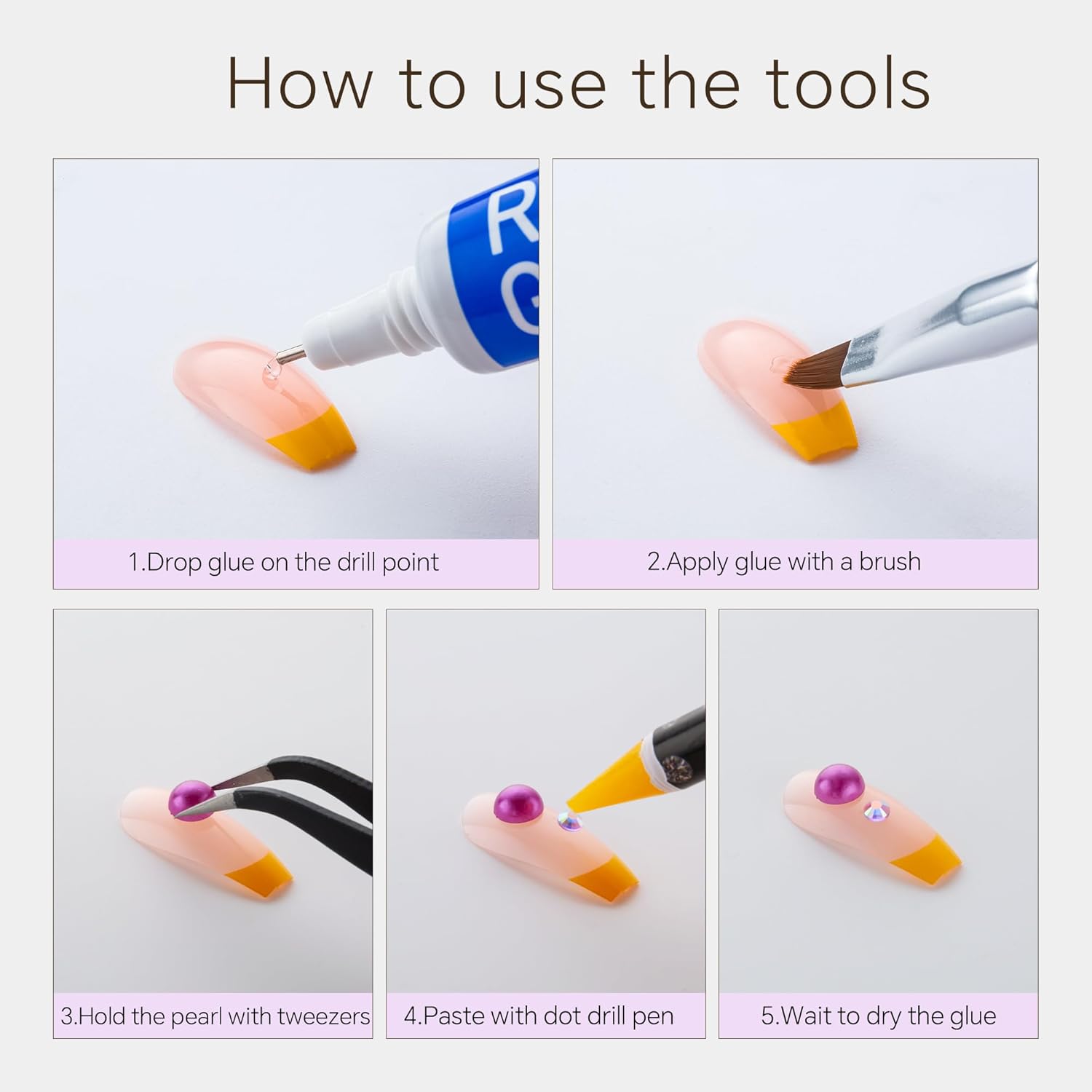 • Useful tools - These pearls and rhinestones have a flat back, which is excellent for easy placement.and you can pick up any large or small pearls and rhinestones with the crayons we bring along. And use the brush to smooth out the Gel, these tools will work very well