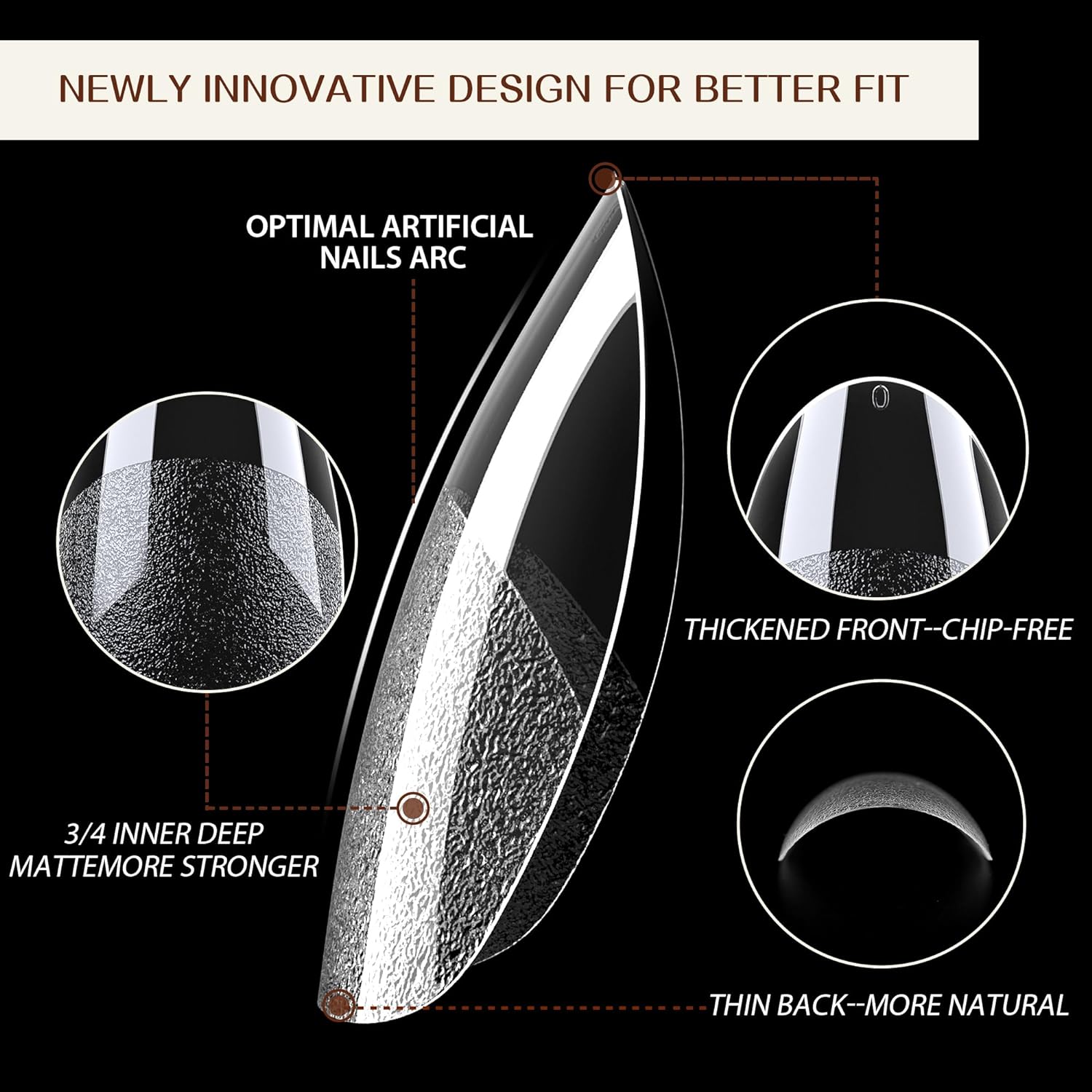 • 【Updated 3/4 Inner Deep Matte】 Our extra short almond fake nails have been upgraded with 3/4 inner deep matte texture, providing stronger adhesion to your natural nails. The almond nail tips are pre-shaped, saving your time and effort. No worry that your nails will become thinner and uglier due to polishing, better care for your nails