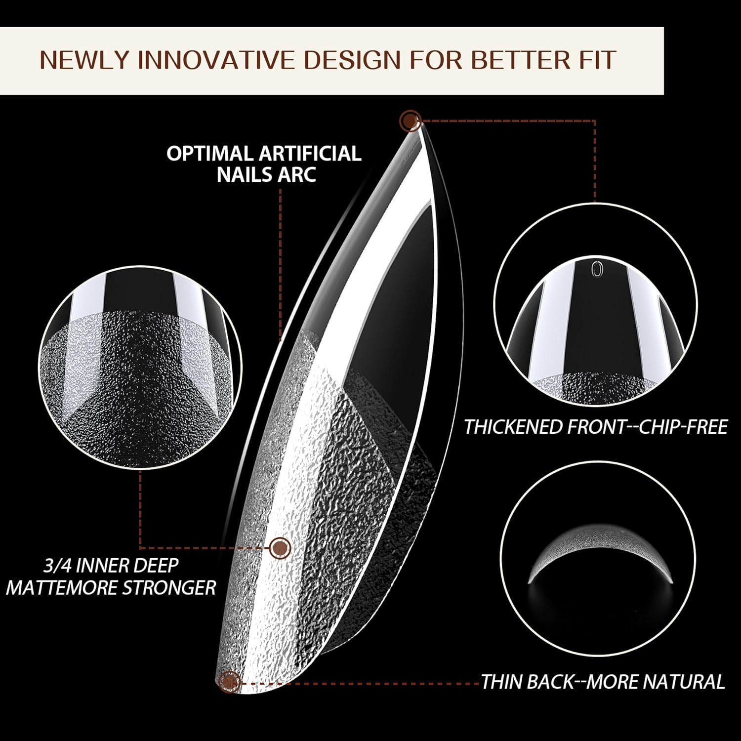 • ❤️【Updated 3/4 Inner Deep Matte】 Our extra short almond fake nails have been upgraded with 3/4 inner deep matte texture, providing stronger adhesion to your natural nails. The almond nail tips are pre-shaped, saving your time and effort. No worry that your nails will become thinner and uglier due to polishing, better care for your nails!