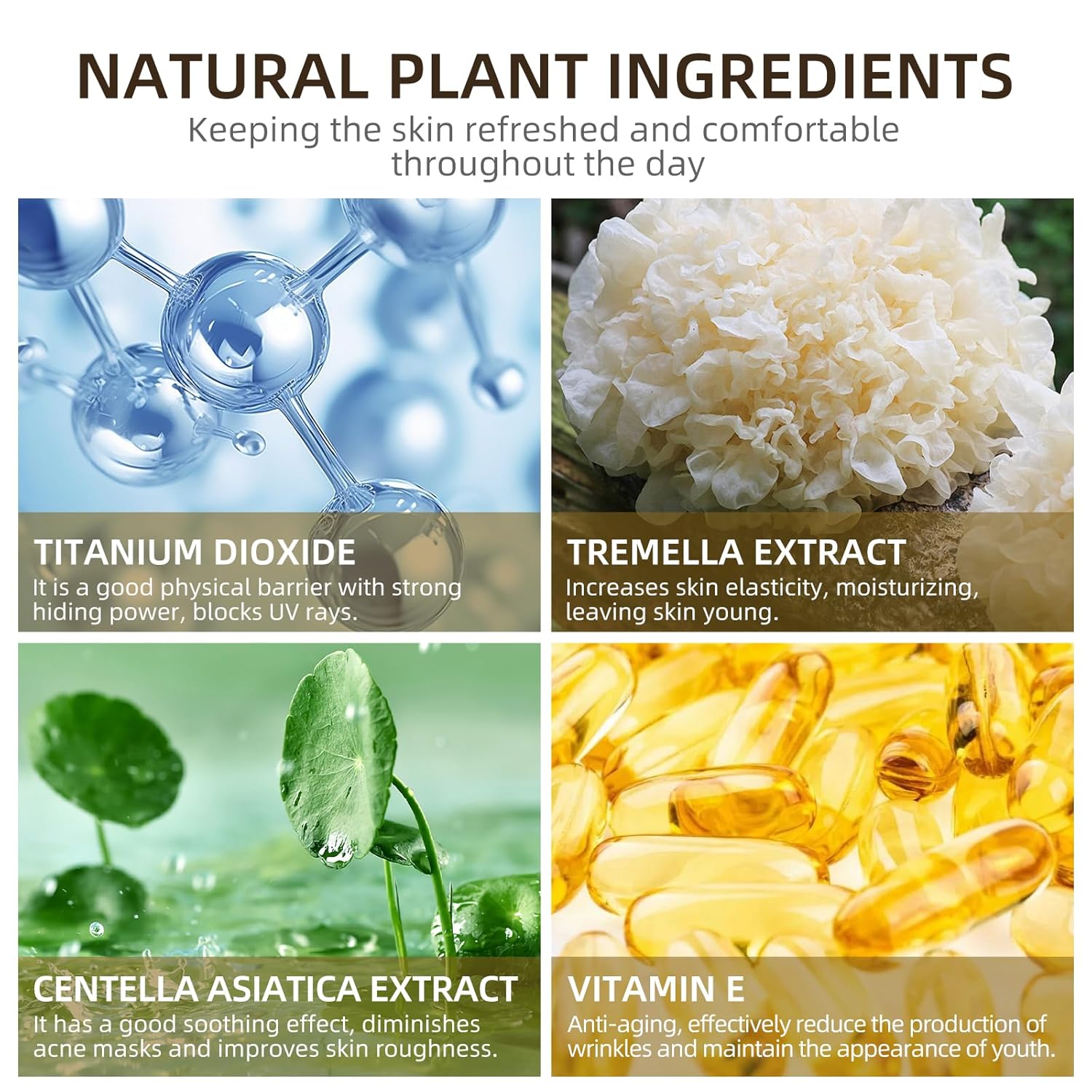 • 【Long Lasting Concealer】The bb cream foundation uses a skin-friendly elastic bionic film. The soft bionic film presses out an even and smooth BB cream to create a full coverage foundation. Brightens skin tone, hides blemishes, pores, and acne marks. It has a 24-hour concealer effect, does not clog pores, and is delicate, comfortable and breathable.